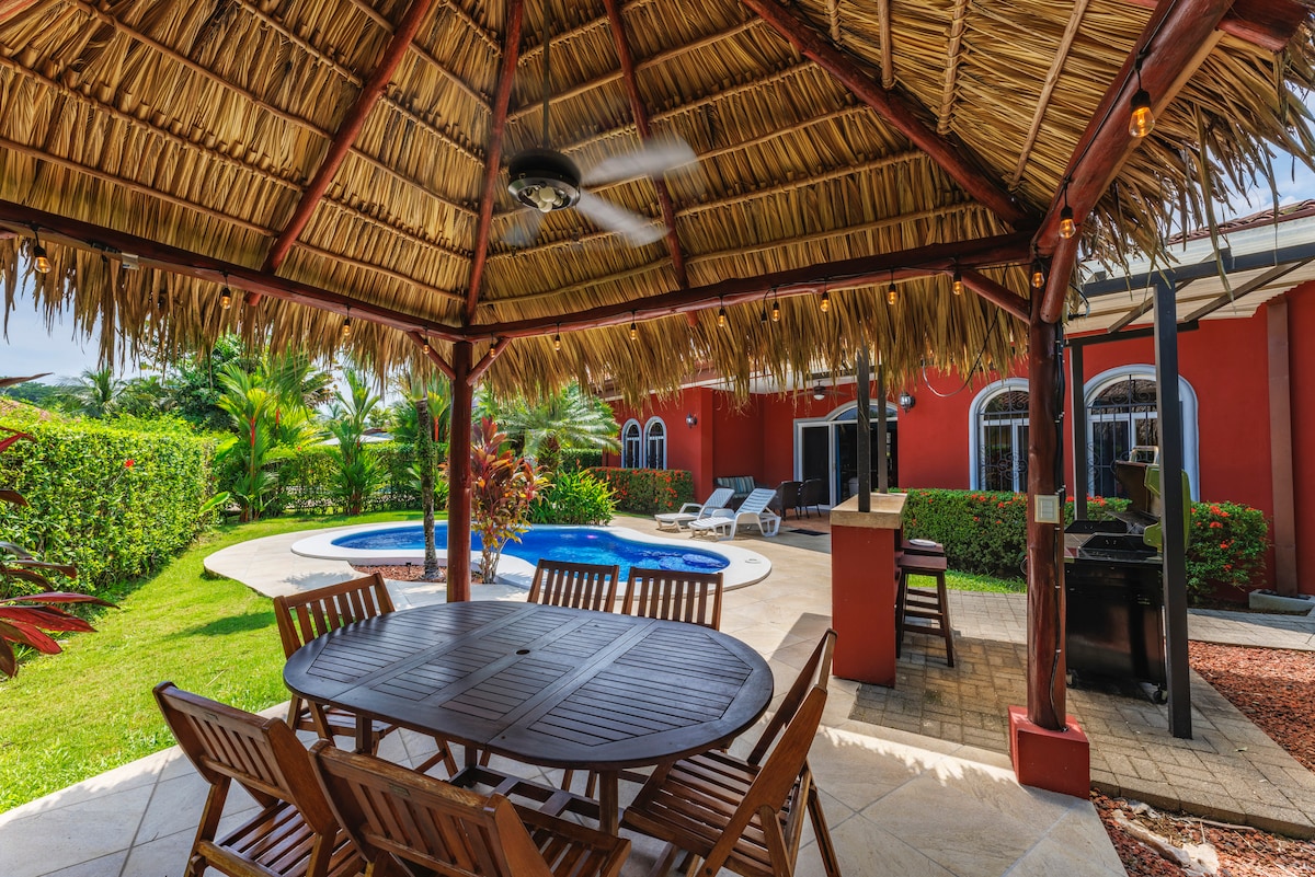 Unique Balinese inspired treehouse overlooking a seasonal river, butterfly garden and tropical fruit orchard. Built with locally sourced lumber that was mostly milled on the property and complemented with keepsakes and carved wooden accents collected while exploring Indonesia and Thailand. This is a birder’s paradise with daily visits of scarlet macaws, parrots and toucans. Located a short drive from world class surfing , oceanfront restaurants and nightlife in playa Hermosa and playa Jaco.