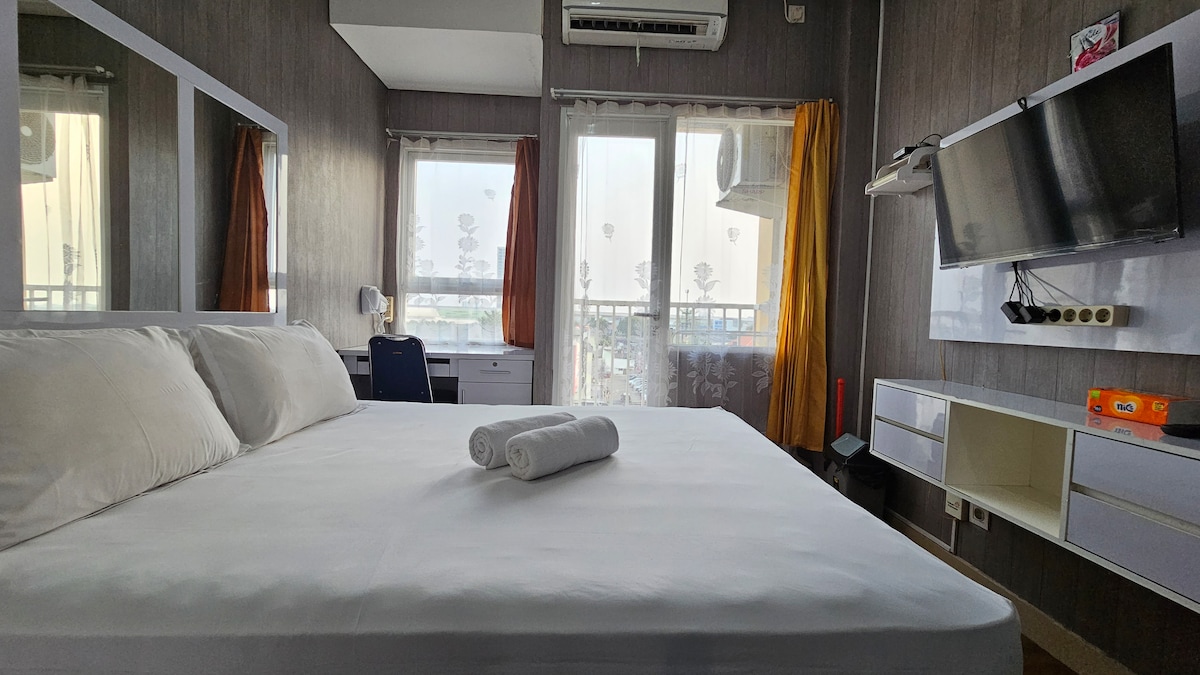 🏡 Welcome to Gading Greenhill in Kelapa Gading, Jakarta! ✨ 24m² Top Floor Studio Apartment with Self Check-in! A cozy retreat with privacy and security. Perfect for exploring the city or unwinding in peace. Enjoy a hassle-free stay and experience Jakarta like home. 🏢 FACILITIES : ✅️ Complete amenities 📺 50" HDTV with NETFLIX & Cable TV 🌐 Fibre optic WiFi 🍳 Kitchen for Light Cooking 🏋️ Gym 🛡️ 24/7 security 🚗 Car park 🧺 Laundry service 🛍️ Minimarts 🏊 Swimming pool 🏀 Basketball court
