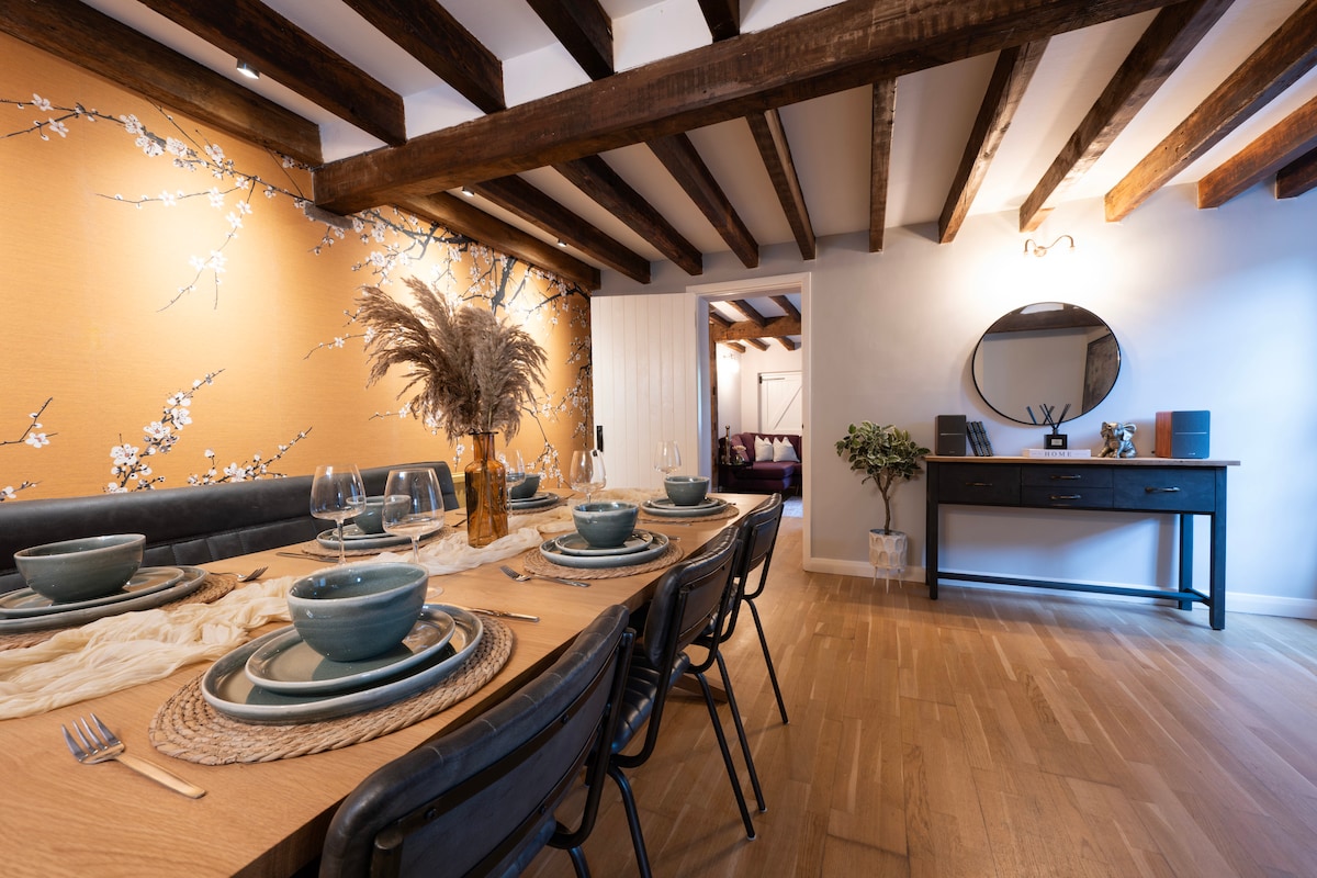 Welcome to our "Rabbit Hole", aptly named as you will discover on your visit to us; just peep out of the windows! Spacious but intimate, we hope that we got your holiday home right. Some of the stuff we thought of, a super king bed, so you can stretch out like starfish. Love music, connect and play your sounds on the Samsung speaker. 65" television to watch a Netflix epic? Open the window in the bedroom, fill the big bath tub and immerse yourself in the night sky with a glass of bubbles