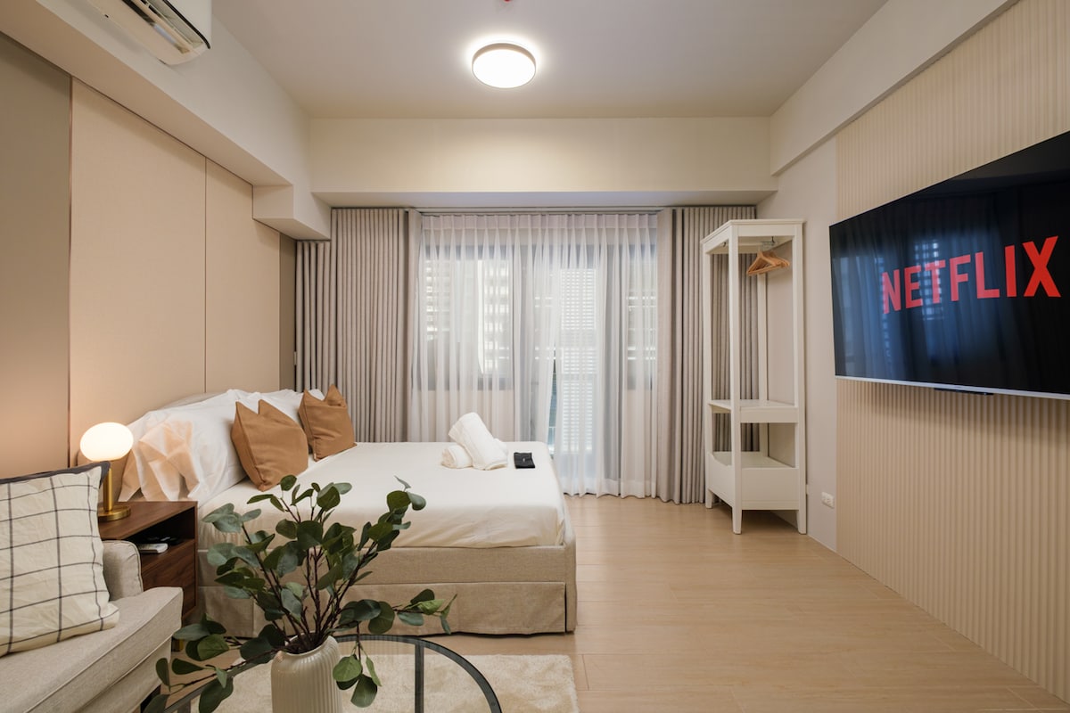 全新|面朝Salcedo公园的舒适公寓,配备65英寸Netflix电视