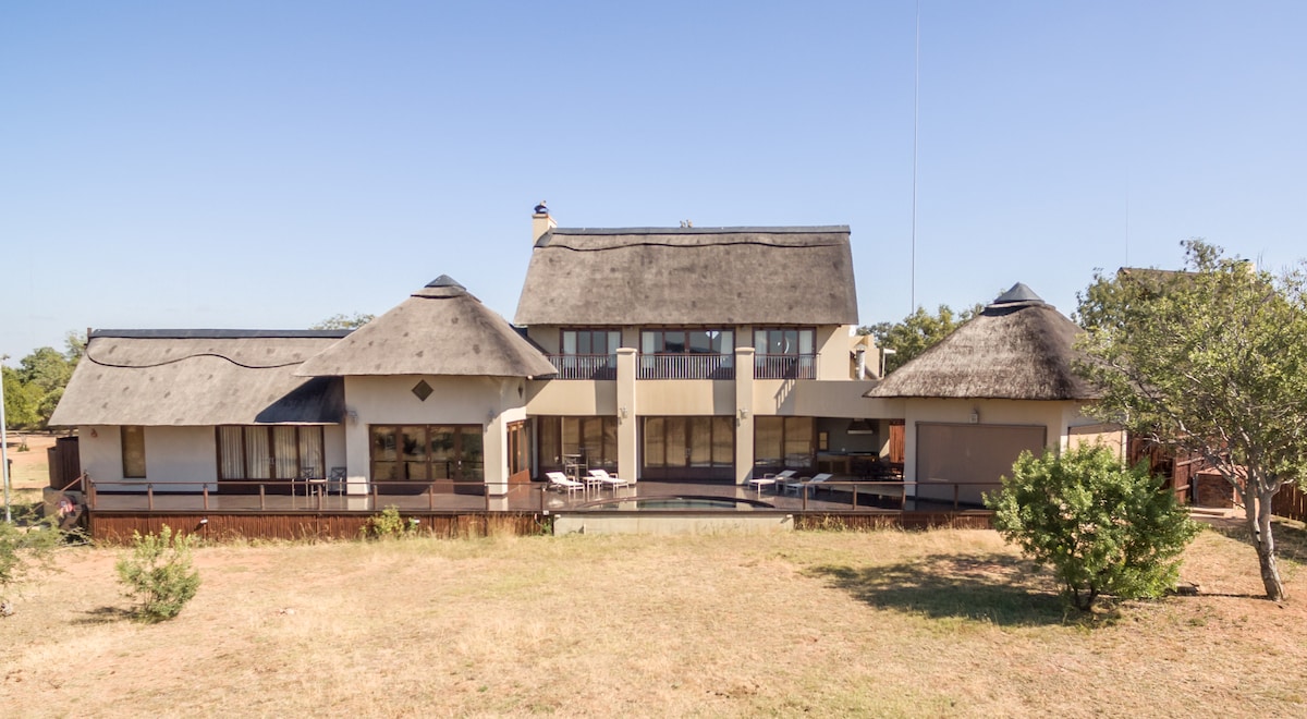 Beautiful thatch bush house located in the middle of a lion & wildlife reserve the house is very tropical and surrounded by a variety of birds and wildlife,fenced in for your safety this piece of paradise includes a game drive vehicle,1game drive a day as well as a fully qualified full time ranger who will be able to assist you with any of your needs through your stay,we have also fenced in a large portion of land for bird watching bike riding & hikes to the kopie in a predator free concession