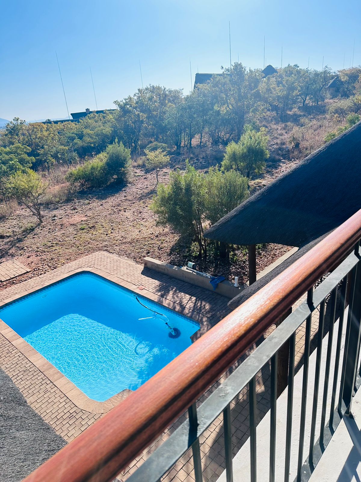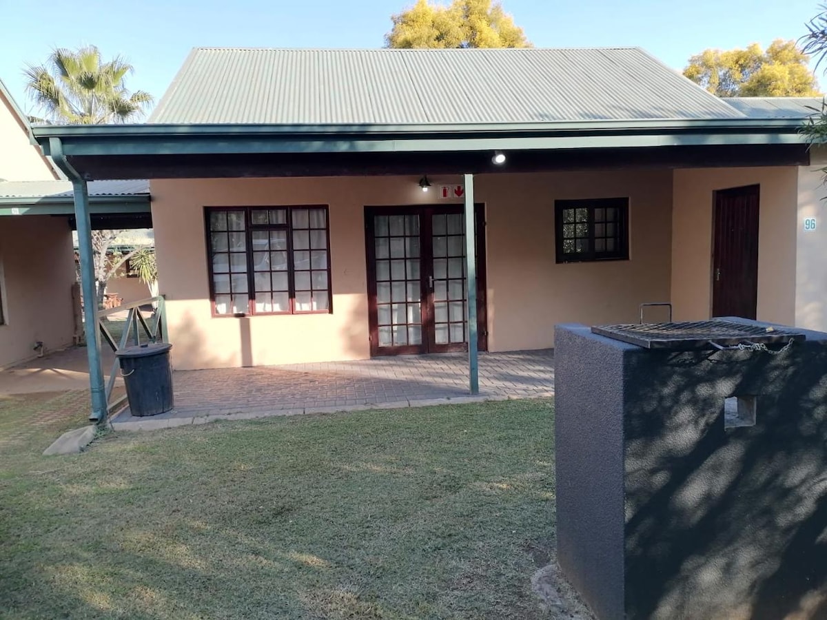 Forget your worries in this spacious and serene space. Lodge 97 is privately nestled between trees - often bustling with birds and squirrels who love to be spoiled with fruit and bread crumbs. This property is ideal for families, couples or mature people who want to enjoy nature and tranquility. Hiking and cycling among wild life are popular activities. The clubhouse on the estate (10 min. drive) provide activities such as golf, spa, game drives, swimming pool, gym, restaurant, padel.