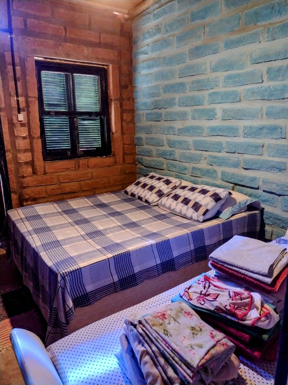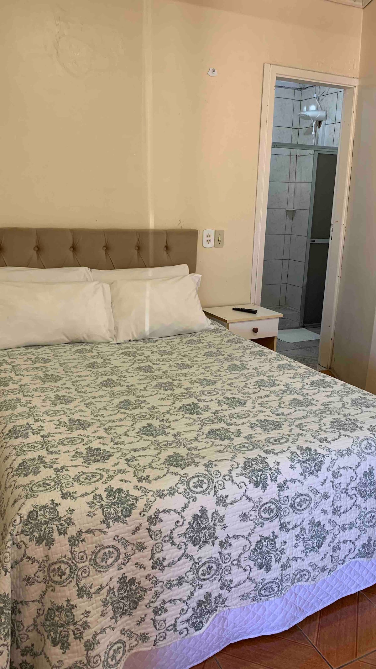 O quarto possui banheiro privativo e está equipado com cama e colchão novos, lençóis e travesseiros, frigobar, ar condicionado, TV smart e roupeiro para garantir conforto e conveniência.