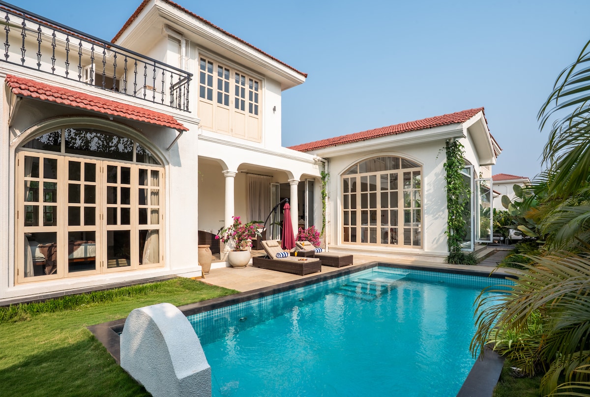 This 3-bedroom villa "IKSHAA®" with a private swimming pool is one of the most secluded and romantic villas which combines luxury with rustic beauty! It's a standalone villa epitomizing exclusivity and complete privacy. The greenery and forest around is charming and yet it is just a 20 mins drive away from the Goa airport or from the nearest beaches of south Goa. You will have no trouble feeling right at home here at IKSHAA® in Loutulim!