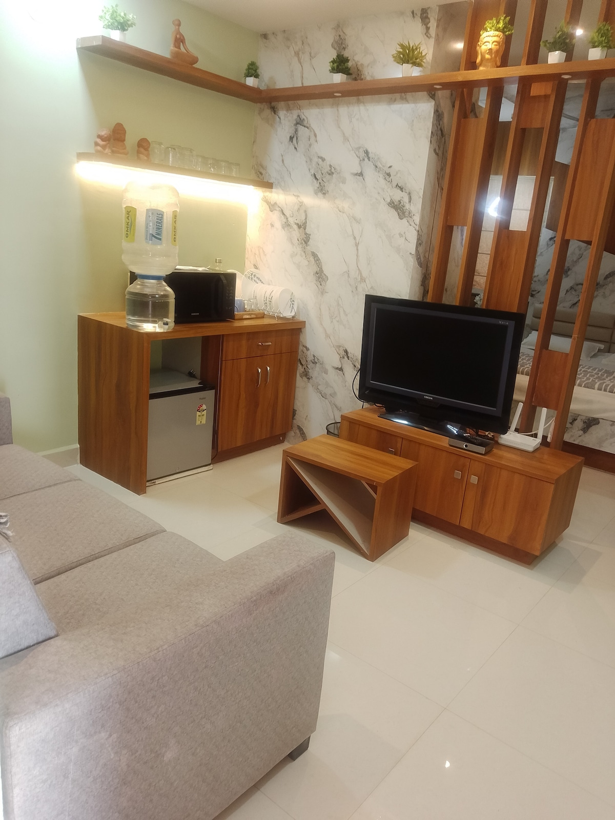 Nestled at a charming, tree-lined crossroad away from the hustle and bustle of the city, our fully furnished studio apartment suites offer home-like convenience with all modern amenities, along with luxuries which can rival the best of hotels. Each studio apartment can accommodate up to 4 guests. We are situated at a convenient and well-connected location, under 10 minutes from the Mumbai-Bengaluru highway. Self-owned and managed, we offer a personalized experience.