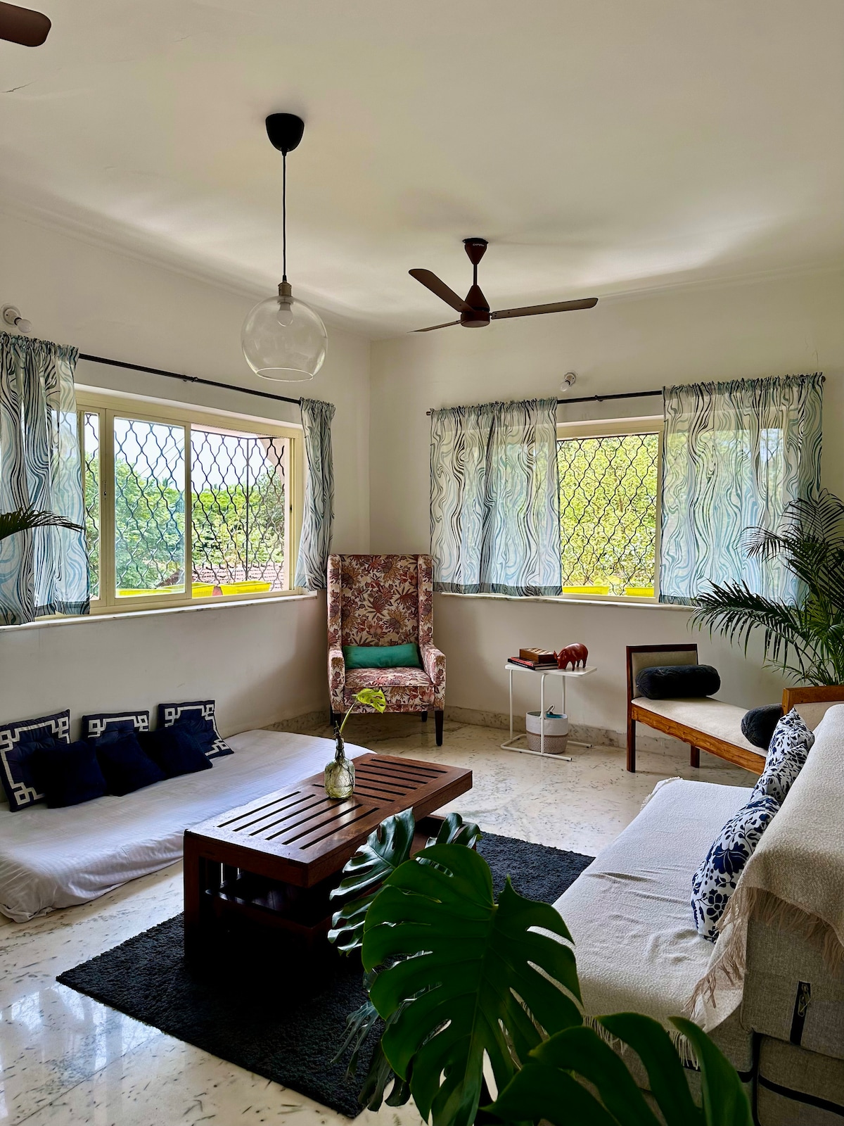 Zeist Feni is a Goan house located between Panjim & Old Goa. It's a house, not a hotel. So you may see an ant crossing the floor or You might spot a bird building a nest on your window. That’s not a glitch. That’s a real home. Hidden in the quiet fishing village of Ribandar, Zeist Feni lets you live Goa the way Goans do — unhurried, sun-washed, and rooted. You’re 10 minutes from the city buzz, yet far enough to hear the river breathing at night. This house is for travellers who value culture