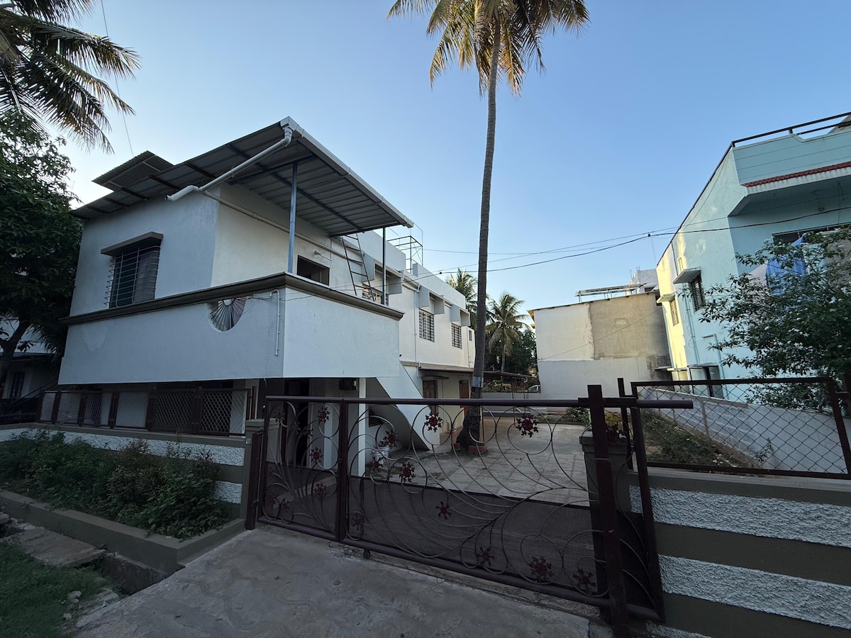 Welcome to our cozy, independent studio on the 2nd floor, featuring a private entrance, attached bathroom, and access to a beautiful terrace. Enjoy peaceful sunrises and sunsets with tea, city views, and a relaxing walk. Just 300 meters from NH47, 1.4 km from KLE Hospital, and 5 km from the Central Bus Stand, it's a perfect base for travelers. Ideal for comfort, convenience, and a touch of serenity during your stay. Please check house rules before booking.