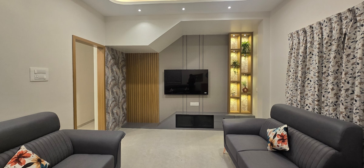 Welcome to our cozy and modern 2BHK house, perfect for families or groups of friends looking for a comfortable and relaxing stay. This spacious house features two comfortable bedrooms with Queen mattress, living room, and a functional kitchen, making it ideal for a memorable vacation. Our house is equipped with all the amenities you need for a comfortable stay, including Wi-Fi, TV with Jio and OTT, 6 hrs Power backup, Air cooler, Iron box, Washing Machine, Hair Dryer etc
