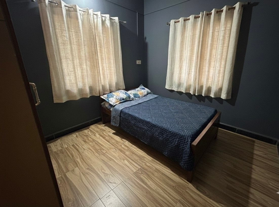 Family-friendly getaway in our stylish & spacious 3-bedroom, 2-bathroom home. Located near national highway, public transport, Marriage Halls, Vidhana Sudha, lake, hospitals & airport. Nearby gardens, government offices & public transport. Property is in a posh & safe locality. Ideal base for a relaxing vacation. Designed with comfort and convenience in mind, comfortably sleeps 6-8 guests, ideal for families or small groups. The home is cleaned & sanitized prior & post each guest stay.