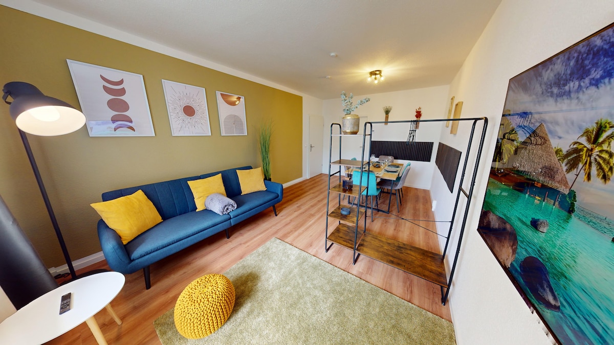 Our apartment is located in the trendy district of Leipzig-Plagwitz. The "Elsterpassage" tram stop is right next door, from there you can reach numerous destinations, such as the Red Bull Arena Leipzig and the QUARTERBACK Immobilien ARENA are 3 and 4 stops away respectively - the Felsenkeller and Täubchenthal event locations, as well as the Musikalische Komödie (operetta and musical theater) are easily accessible on foot.
