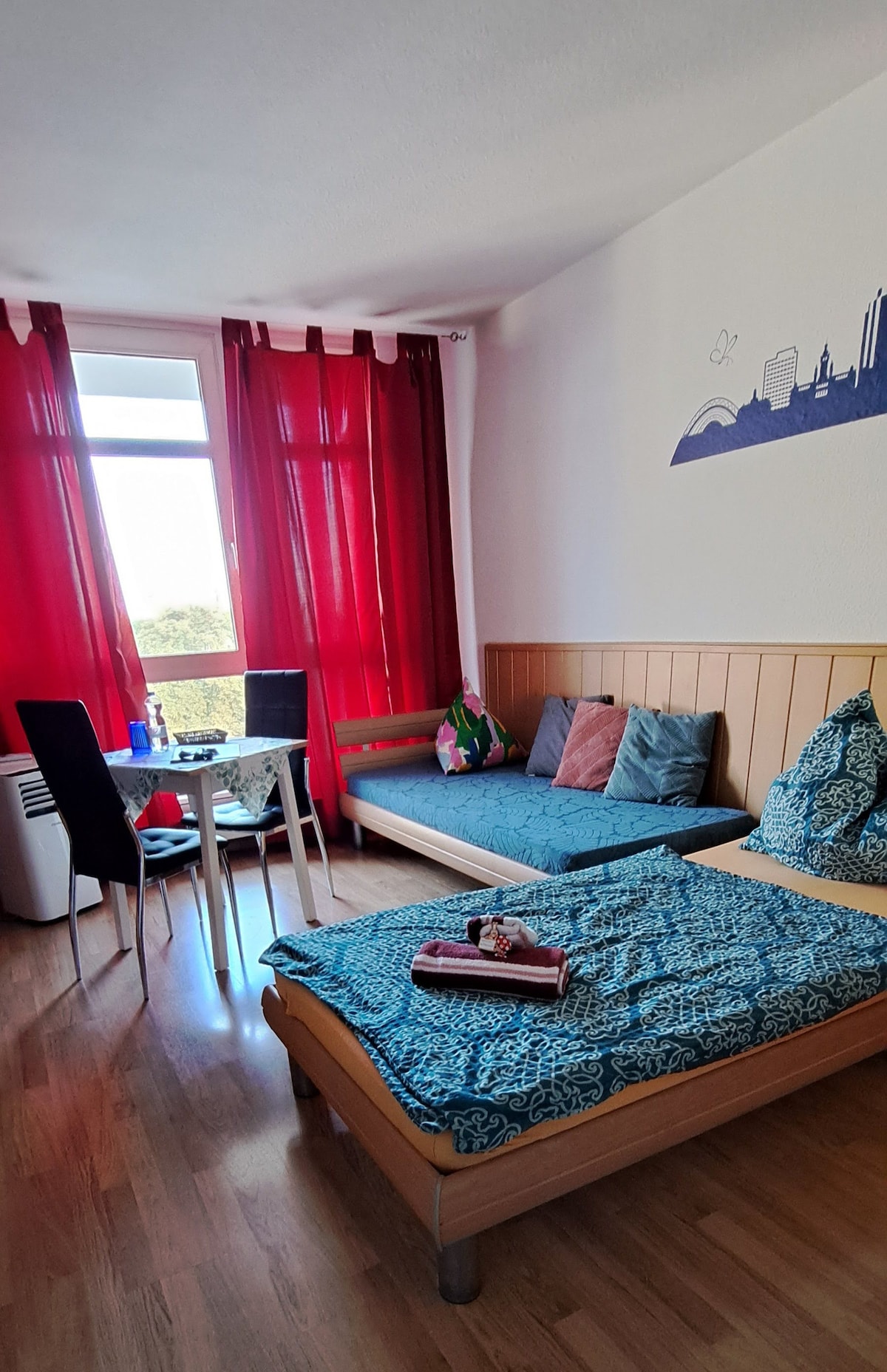 Unser Apartment "Hanoi" ist 50 qm groß und besteht aus einer vollausgestatteten Küche und einem Wohn- Schlafbereich. Die Wohnung liegt sehr ruhig zum Innenhof und verfügt über einen großzügigen Balkon. • 22 Min. Fußweg vom Hauptbahnhof • 10 Minuten Fußweg zum Marktplatz • vollausgestatte Küche • großzügiger Balkon • Waschmaschine • Boxspringbett • Dusche • Restaurants und Supermärkte direkt nebenan • Stellplatz im Parkaus (3 Min. fußläufig entfernt) für 10 € pro Tag