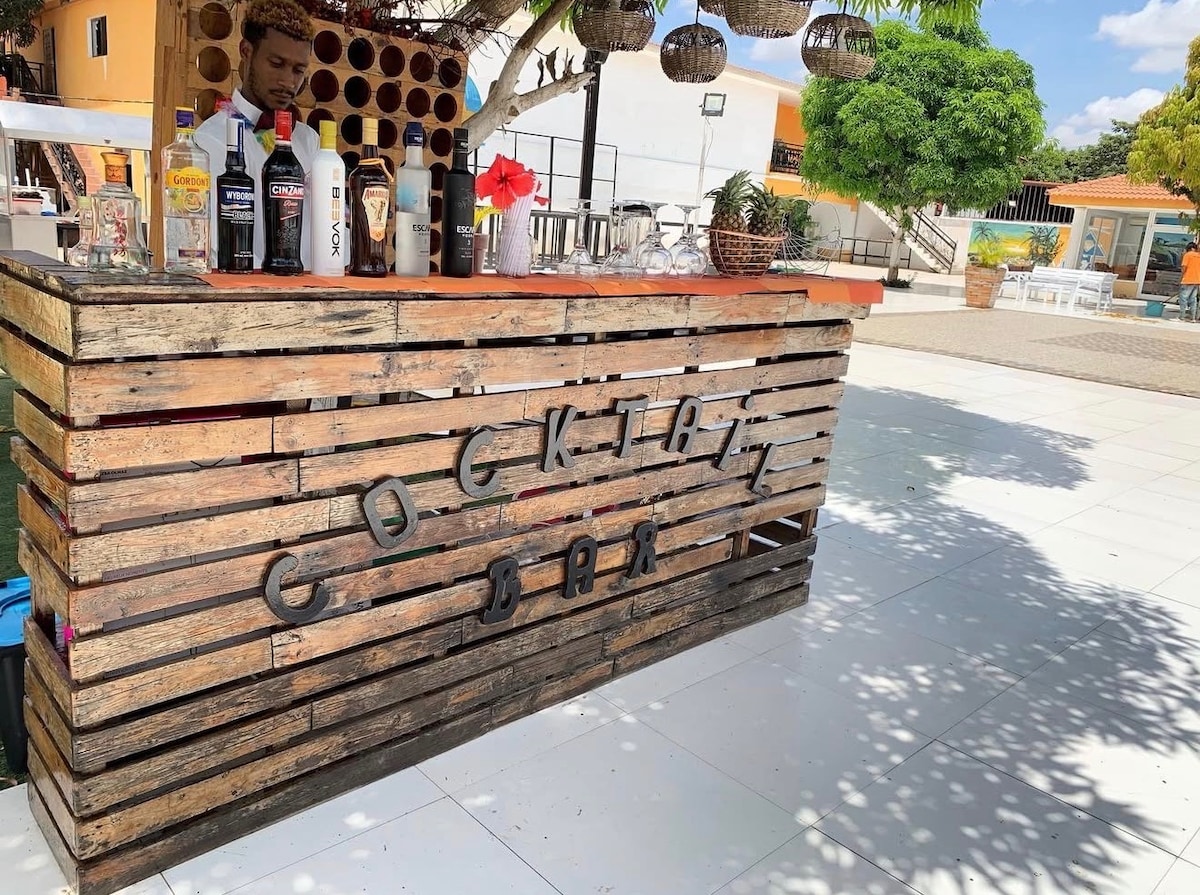 This eclectic and cosy 2 bedroom flat is perfect for solo travellers, couples and also trios who want comfort and cultural immersion in the centre of Luanda. It is fully equipped with essential amenities for your comfort, such as AC's in all rooms and mosquito nets in most windows. WE OFFER WELCOME GIFTS. Located only 8min from the international airport and 6min from Luanda Bay, this property is surrounded by restaurants, cafes and basic services within walking distance.