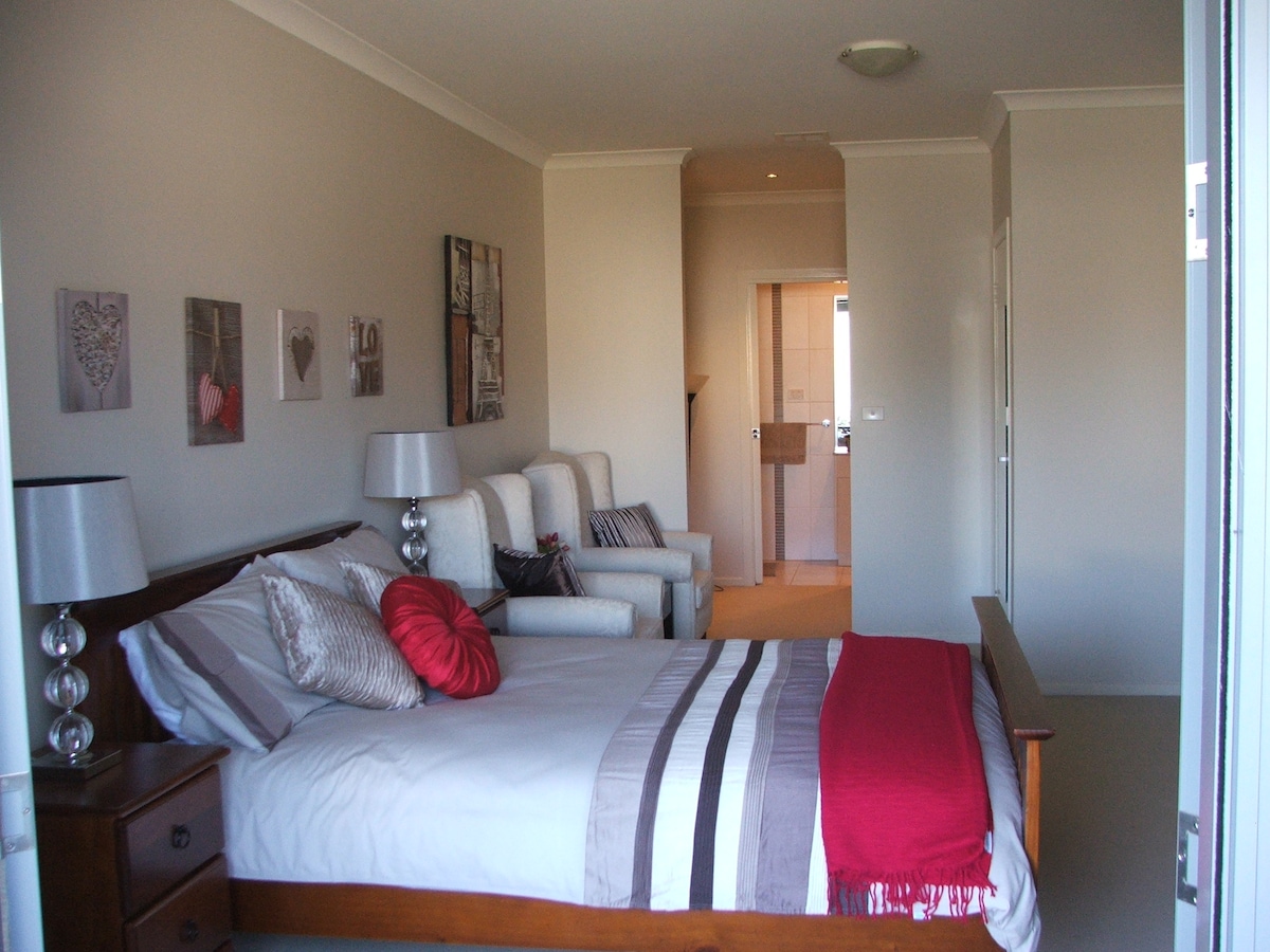 Guests will have their own entrance that opens up to a sun-filled, modern room-ensuite with a fully equipped private kitchen that overlooks our landscaped courtyard. All amenities in the room are new and please treat this facility as your own. The place is geographically central to all of the Canberra's attractions and most of the Governemt offices, just 10 minutes to the city, Belconnen, Barton, Kingston and Woden. Public transport available from top of the road. Street parking available.
