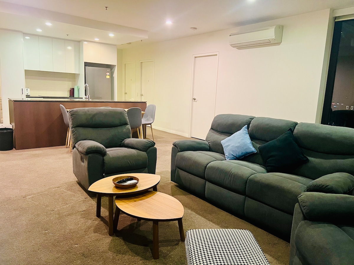 Enjoy easy city living. Free wifi Complimentary wine 🍷 on arrival Coffee machine with pods supplied Washing machine and dryer King bed Queen sofa bed Gym on-site Cafes and bus interchange at your door step Westfield straight across the road Free Secure parking Apartment located on the 7th floor 55 inch Smart TV Large floor to ceiling windows so the kids can watch buses 🚌 come and go till their hearts content.