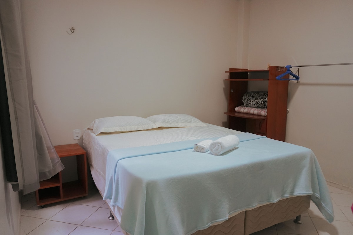 Embrace simplicity in this peaceful, well-located place. Surrounded by lush greenery and filled with natural light, the house offers two air-conditioned bedrooms, a bright, climatized living room, a floral veranda, and a fully equipped kitchen. Housekeeping service available, if requested. Free parking, Wi-Fi, and easy access to the Hangar – Convention Center of the Amazon.