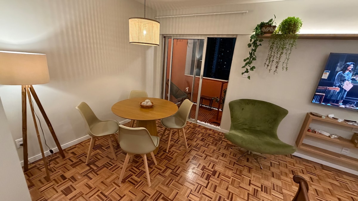 Curta uma experiência elegante neste lugar bem-localizado. Conforto e bem estar é o de melhor que você irá encontrar, além de uma impecável decoração! Tudo de melhor que uma excelente estadia poderá lhe oferecer! Com itens indispensáveis de cozinha, cama, mesa e banho. Entretenimento: 02 Smart Tv's, wi-fi, Tv a cabo, Saundbar, frigobar, purificador de água, forno elétrico, micro-ondas, air fryer, etc... Obs: Só não está incluído na hospedagem energia elétrica, q será por conta do hóspede, o Kwh