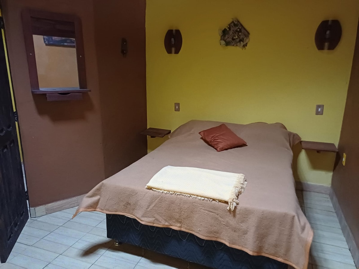 La chambre Mico-Leão-Dourado rend hommage au petit singe doré emblématique du Brésil. Intime et lumineuse, elle accueille jusqu’à deux personnes dans un cadre chaleureux, décoré de tons ensoleillés et naturels. Dotée d’un lit confortable et d’une ventilation naturelle, elle offre un séjour paisible au cœur de la nature. À deux pas de la plage de Baía do Sol, c’est un cocon idéal pour se reposer et se reconnecter à l’essentiel.