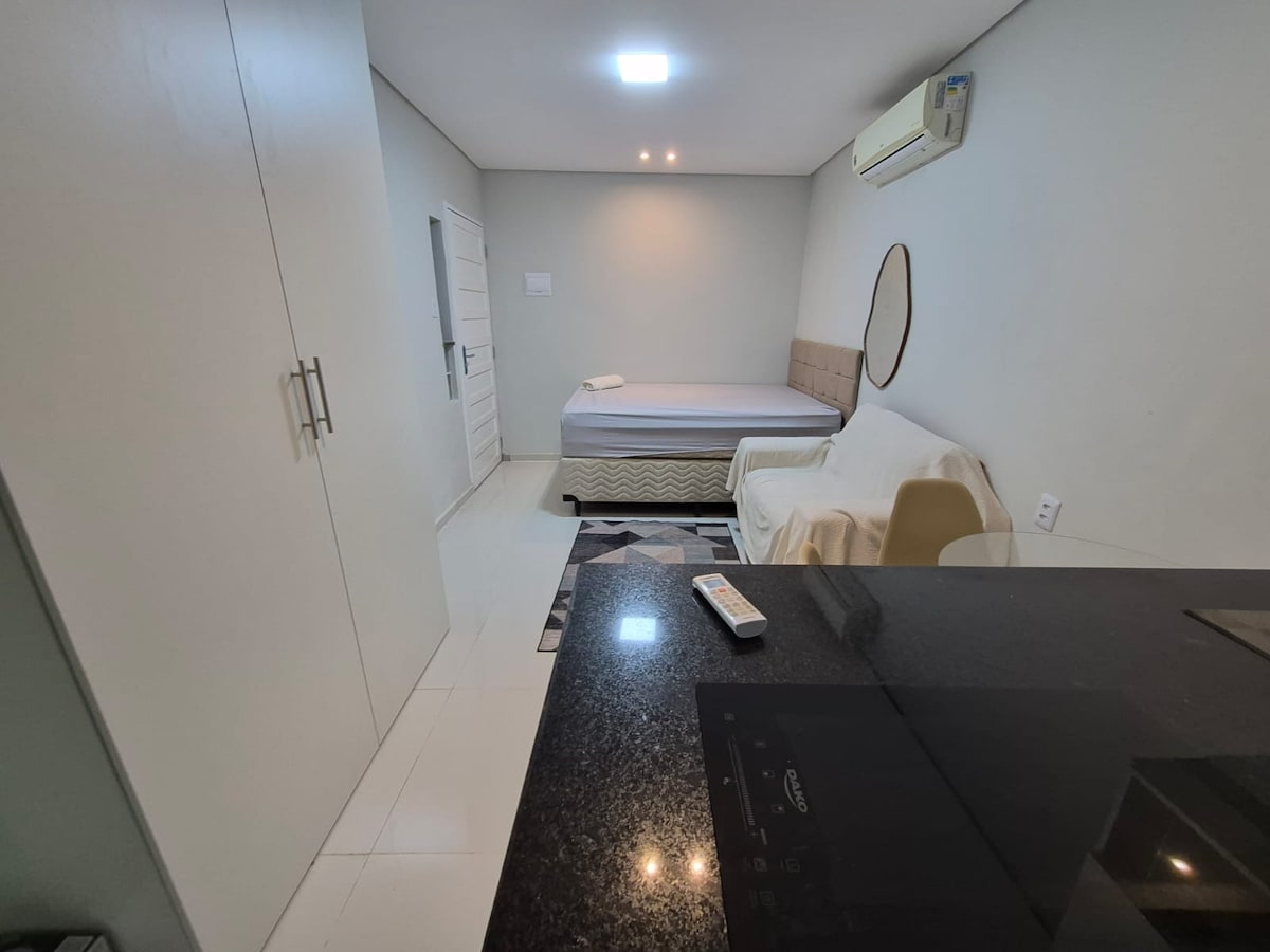 Perfect for couples and travelers, this modern loft in a new building features: ✅ **KING SIZE bed** (premium linens) ✅ **Pool, gym, BBQ area, and panoramic terrace** ✅ **Ultra-fast Wi-Fi** (fiber optic) & **SmartTV with Netflix** ✅ **Fully equipped kitchen**, washer, and AC ✅ **Free toiletries** and essentials provided Quiet location at **Blue Building (Rua dos Caripunas 1016)** – ideal for relaxing or remote work!