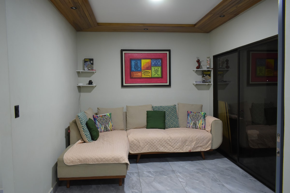 Enjoy our stylish one-bedroom place. The apt is equipped with high Free WIFI Internet so you can work and enjoy vacation; also, under Roof you have free Parking Space. Our decor is modern and cozy. Seat in the terrace, have a refreshment and feel the breeze. Centrally located, only 9 minutes from Juan Santamaria International airport and walking distance to restaurants, supermarkets and shops. We can't wait to host your next stay! Please check our guide.