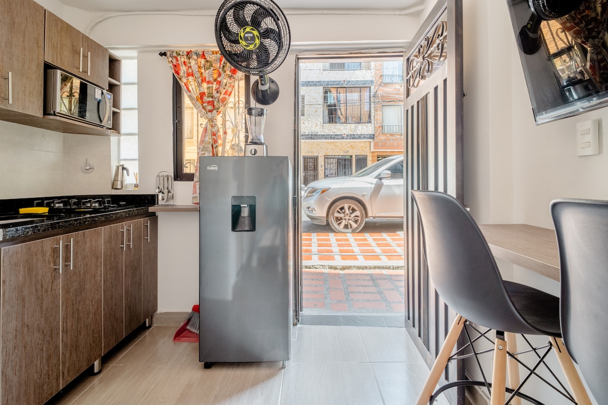 Experience Medellín from this stylish and inviting duplex with a modern urban feel. The bedroom is on the lower level, while the living room, kitchen, and bathroom are upstairs with a comfortable flow between spaces. Street-facing windows fill the home with natural light and fresh air. Located in a walkable, vibrant neighborhood with easy access to public transportation, cafés, supermarkets, and restaurants. High-speed internet makes it ideal for remote work and city explorers alike.