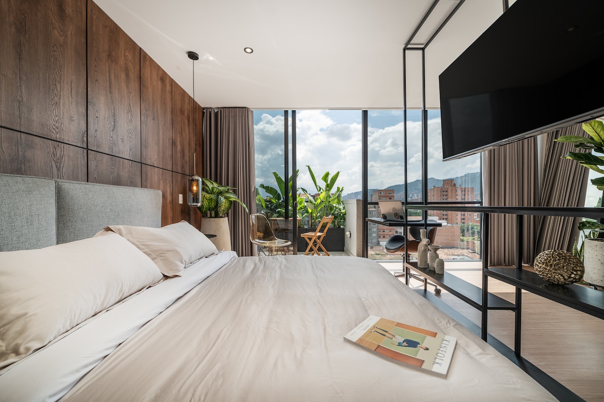 Light, Design & Local Living in the Heart of Laureles Welcome to a bright and peaceful loft designed for comfort, creativity, and connection. This space is perfect for couples, solo travelers or remote workers who want a stylish base in one of Medellín’s most authentic neighborhoods. 🛏️ Comfortable bed with premium mattress & 100% cotton sheets 💻 Dedicated workspace with fast 200 Mbps internet 🌬️ Air conditioning + natural cross-ventilation through floor-to-ceiling windows
