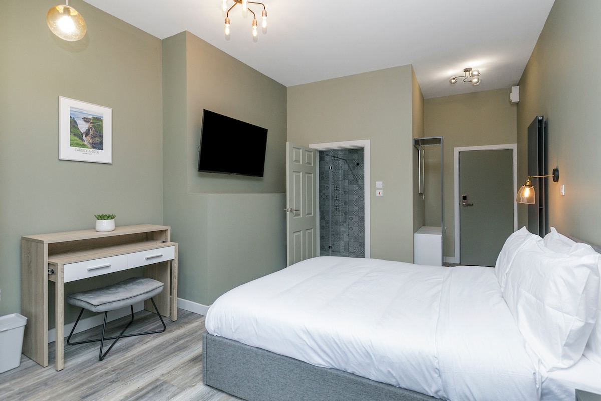 Stay in the heart of Belfast at Bank Square Townhouse—a stylish, affordable stay steps from top attractions, bars, and shops. Enjoy retro charm, 24-hour reception, and free tea and coffee, all just 6km from the airport. Ideal for explorers, concertgoers, and city breakers. All Rooms have Private Bathroom and Shower