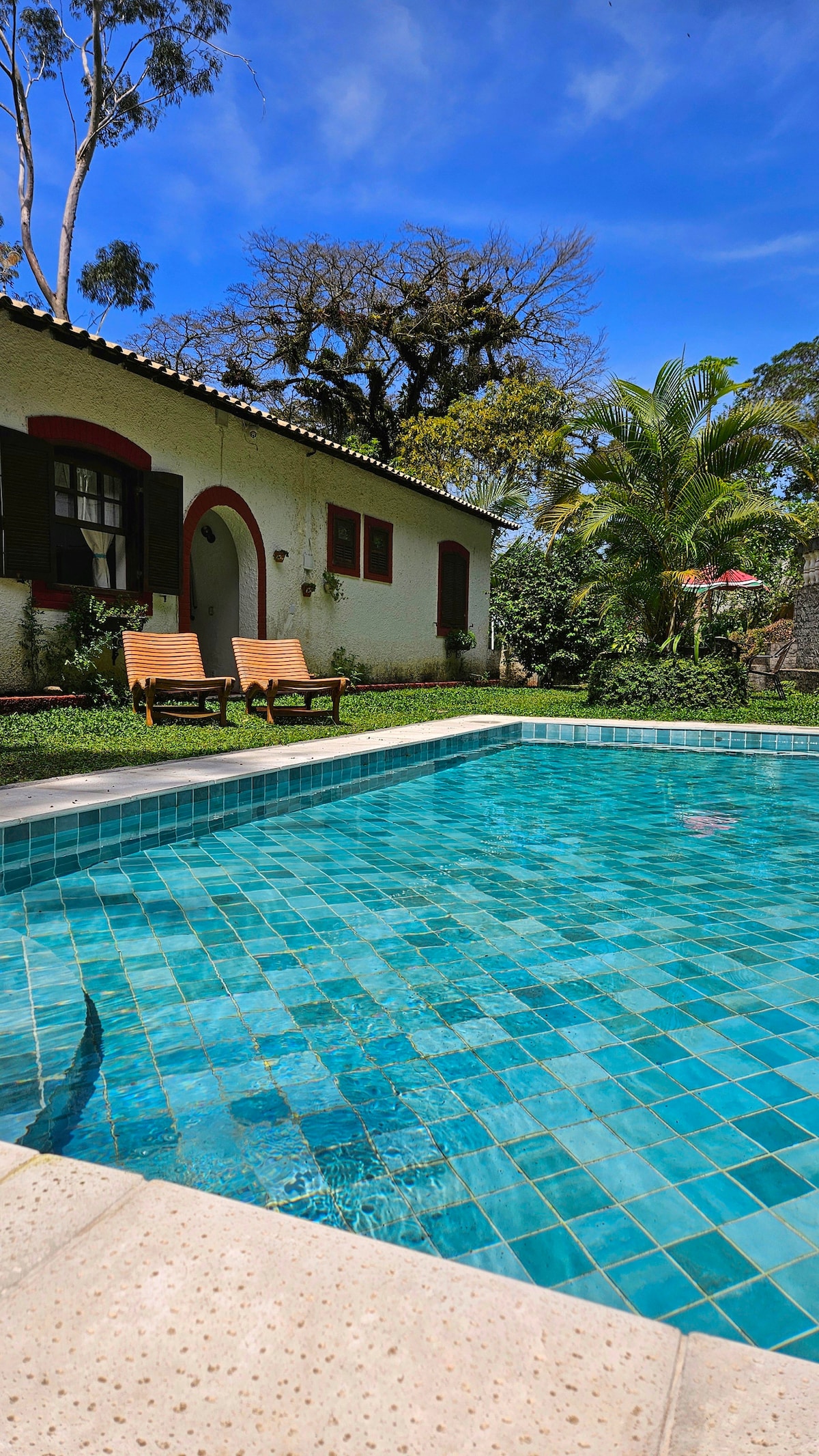 Desconecte-se de tudo ao ficar em meio à natureza. O Sítio Pavão Azul fica no coração da serra, há 7km do centro de Petrópolis e possui cachoeiras privativas, piscina, hidromassagem natural, churrasqueira, lareira, redes, cozinha totalmente equipada e um espaço com pavões e outras aves que podem ser avistadas bem de perto. Aqui você também avista muitos animais livres na natureza, árvores frutíferas e flores diversas. É o lugar perfeito para dar uma pausa, relaxar e se conectar com a natureza!