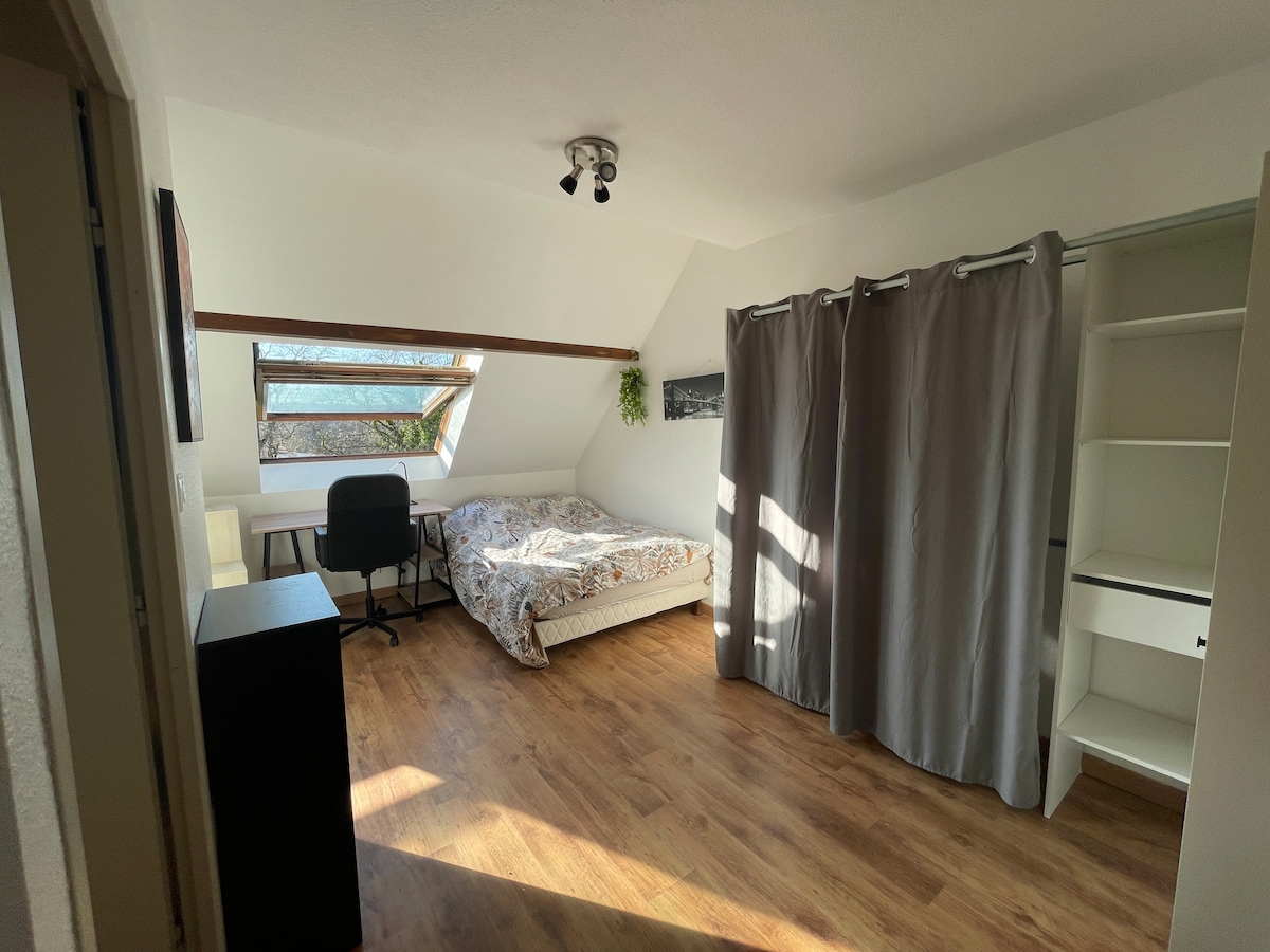 Découvrez ce studio atypique, idéal pour un séjour à deux ou en solo, situé dans une petite copropriété calme à Bavilliers. Profitez d’un environnement paisible, tout en étant à seulement 5 min en voiture du centre historique de Belfort. De nombreuses places de parking gratuites sont disponibles dans la rue, facilitant votre arrivée. Que vous soyez en déplacement professionnel, en week-end découverte ou en pause nature, ce studio vous offrira confort et tranquillité.