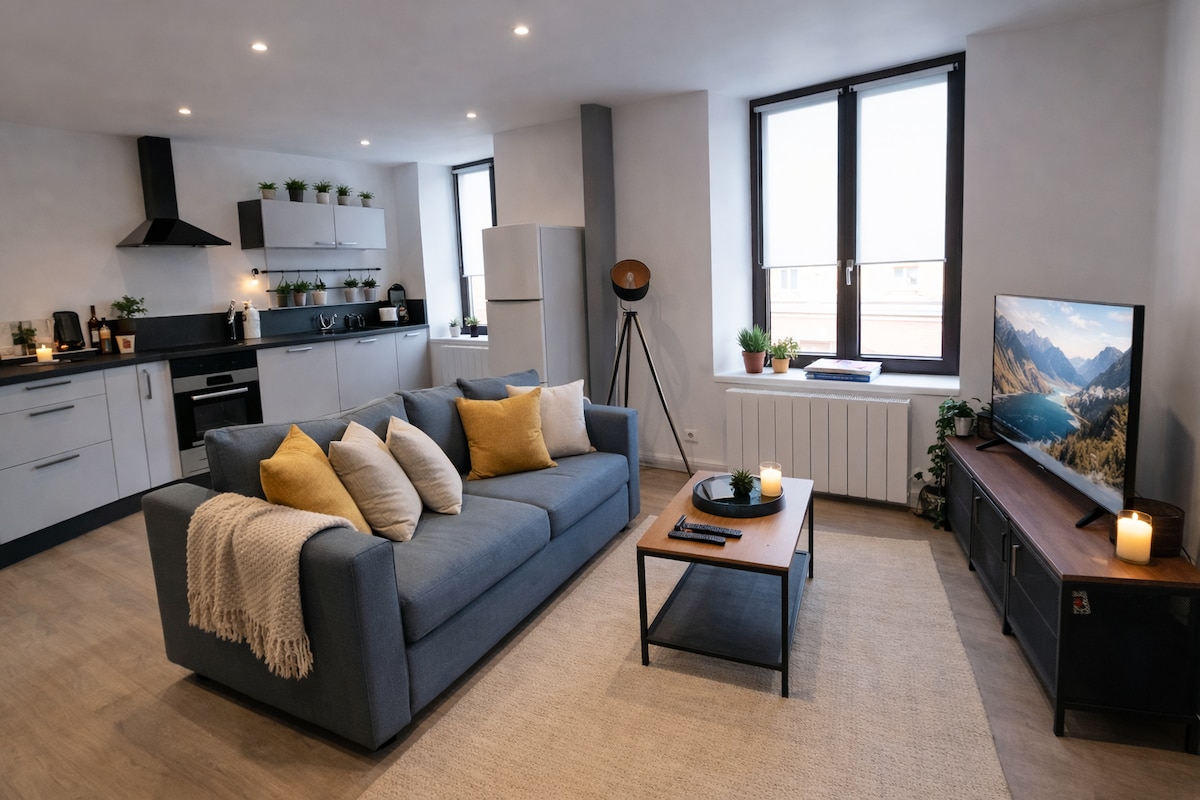 ⭐ Rich Realty ⭐ Une envie d'évasion dans notre ville historique ? Venez passer un agréable et inoubliable séjour dans notre appartement rénové et décoré avec soins ➜ Situé dans l'un des plus anciens immeubles de Belfort à la vielle ville, ses 55 m2 auront la place de vous accueillir confortablement ➜ Idéalement placé à 10min à pied de la gare au pieds des restaurants/bars à 15m de la place Saint Christophe et à moins de 200m du Lion, économies de carburant ou de frais de taxi assurées !