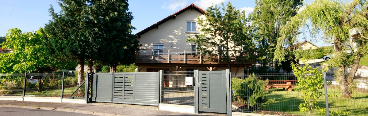 Passez un agréable séjour dans cet hébergement confortable,en très bon état, en pleine ville mais au calme avec un vrai jardin et une agréable terrasse.Deux grandes chambres et une salle de bains avec douche et baignoire séparées..bain finlandais bouillonnant dans le jardin chauffé par poele a bois..accès boîte à clés sécurisée..à 100m à pied des commerces (boulangerie, épicerie, supermarché, pharmacie, poste,restaurants)..ballon d alsace à 30mn en voiture, plage du malsaucy 10mn par voie cycle