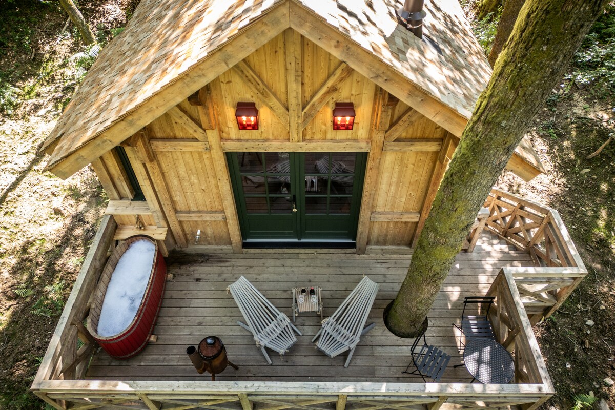 This cottage is surrounded by woods. It's the ideal place to unwind and enjoy nature. It's fully equipped with every luxury, and you can enjoy a cup of coffee or tea outside on the beautiful terrace with a hot tub. In the bathroom, you'll find a wonderful bath to unwind. The cottage is nestled in a wooded area, and we have similar properties adjacent to it, but each has its own private woodland. The minimum age for our guests is 25.