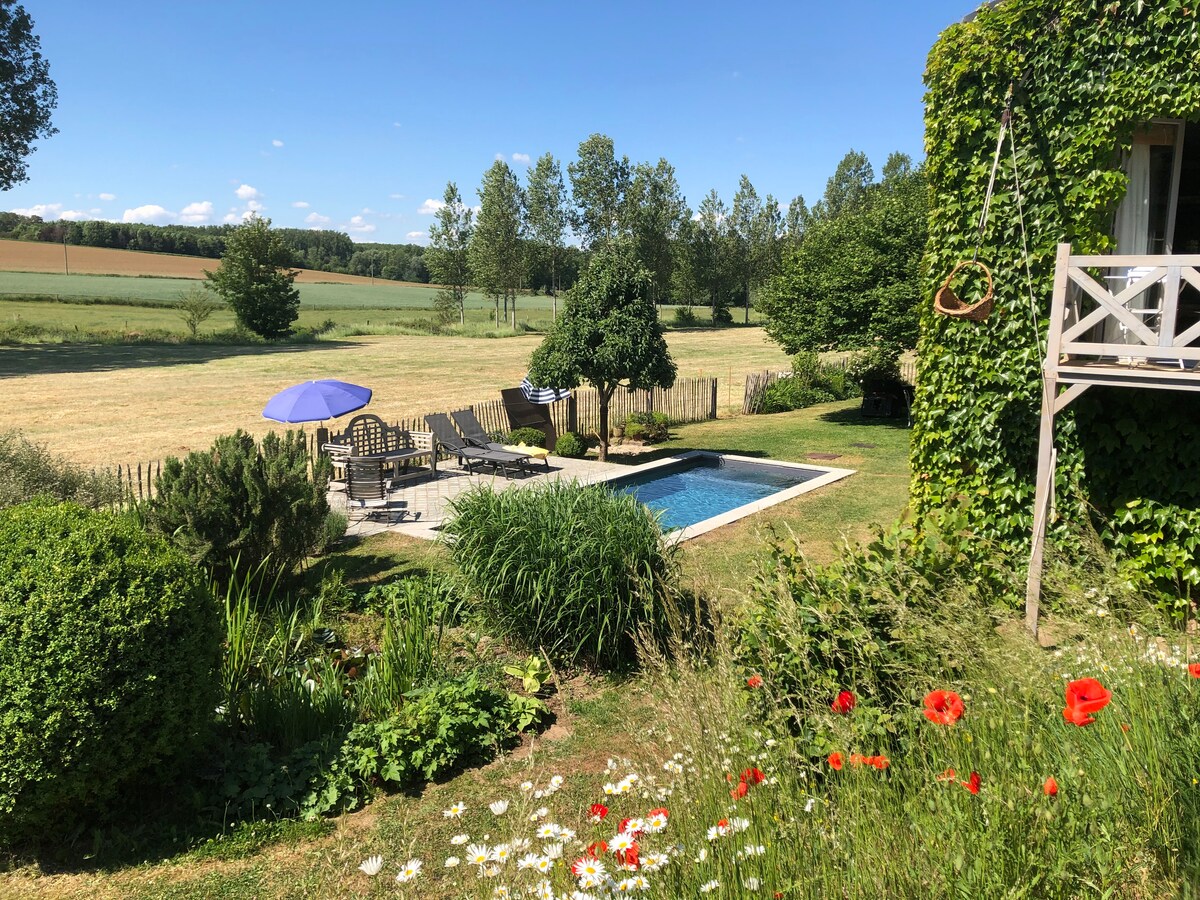 Calme et silence...En pleine campagne,au bout d'un chemin en cul-de-sac, petite chambre d'hôte cosy et confortable,entrée privée,dans un environnement où les seuls bruits sont les chants des oiseaux et le vent dans les arbres. La chambre est vraiment cosy, douche à l'italienne,WC et kitchenette, le tout entièrement privé. (surface complète=25 m²). Piscine privée à partager avec nous en saison.