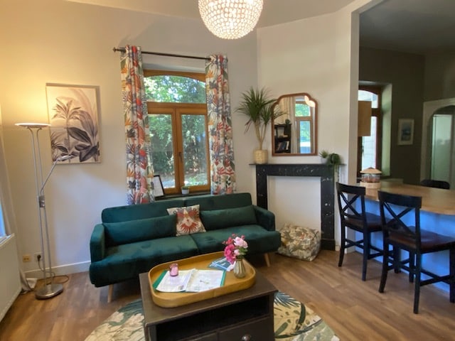 Château entièrement rénové , situation calme et proche du centre d’Esneux (commerces, restaurants,…) C’est dans un endroit tranquille et bucolique que nous vous proposons de venir vous détendre et profiter de la quiétude des lieux. Entièrement aménagé et décoré avec soin, vous disposez d’un espace de 120 m2. Vous disposez d' un sauna (privé) dans l'appartement. Un wellness (Jacuzzi et sauna) est à disposition dans le jardin Emplacement parking à disposition au sein de la propriété