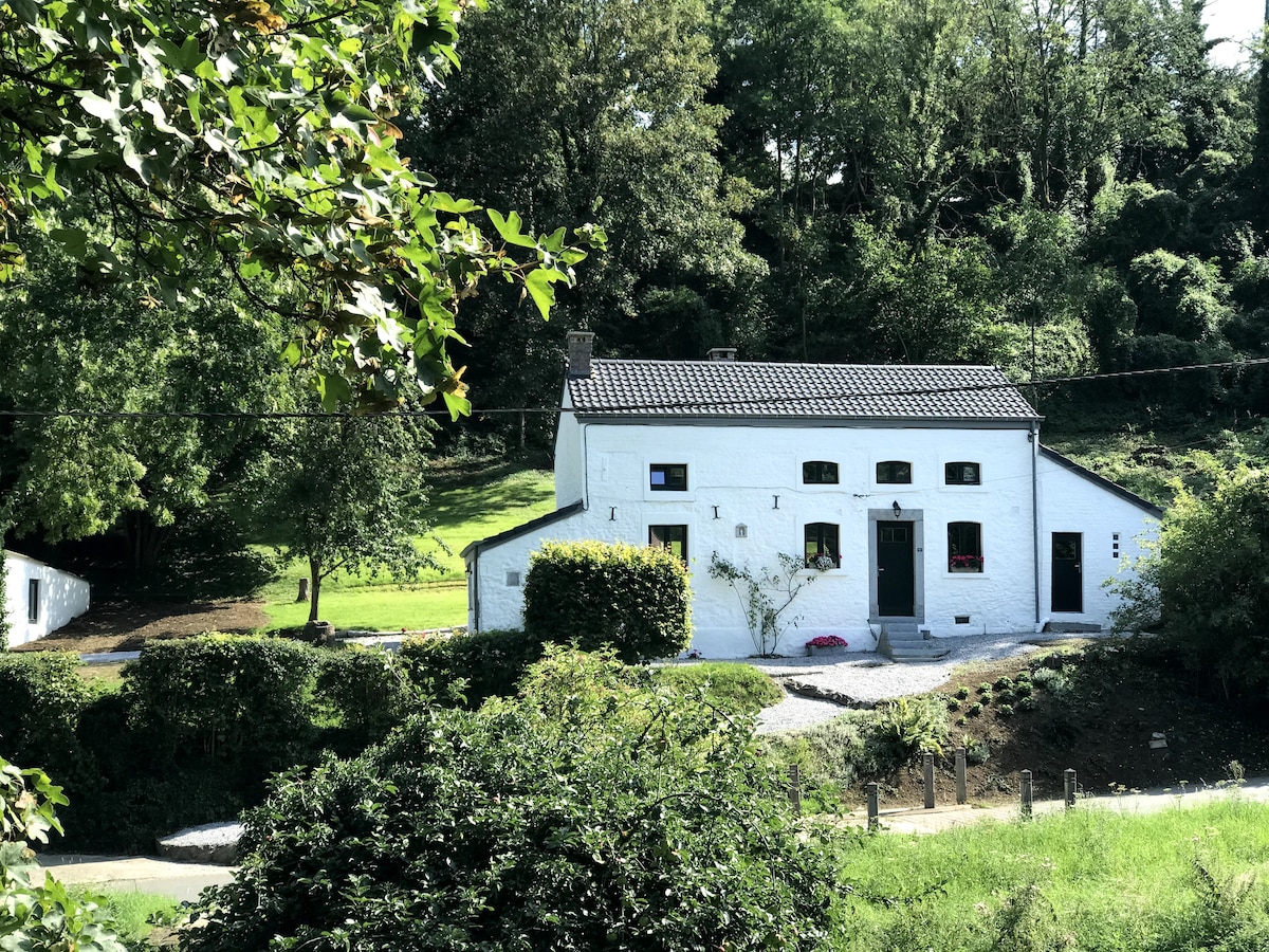 Pleasant, luxury, warm, comfortable cottage, surrounded by nature with a beautiful view of the Ardennes, large private garden with swing, private parking in front of the house. New high speed wifi. Last house at the top of a pretty little village, on a dead end road, 150 m from the forest. Perfect for walks. For 2 adults and possibility of 1 child and 1 baby. 1 hour 15 minutes from Brussels, Liège, Lux. 4km from the Meuse valley. Tennis!! under construction. Spa pool 15' Golf 12'..