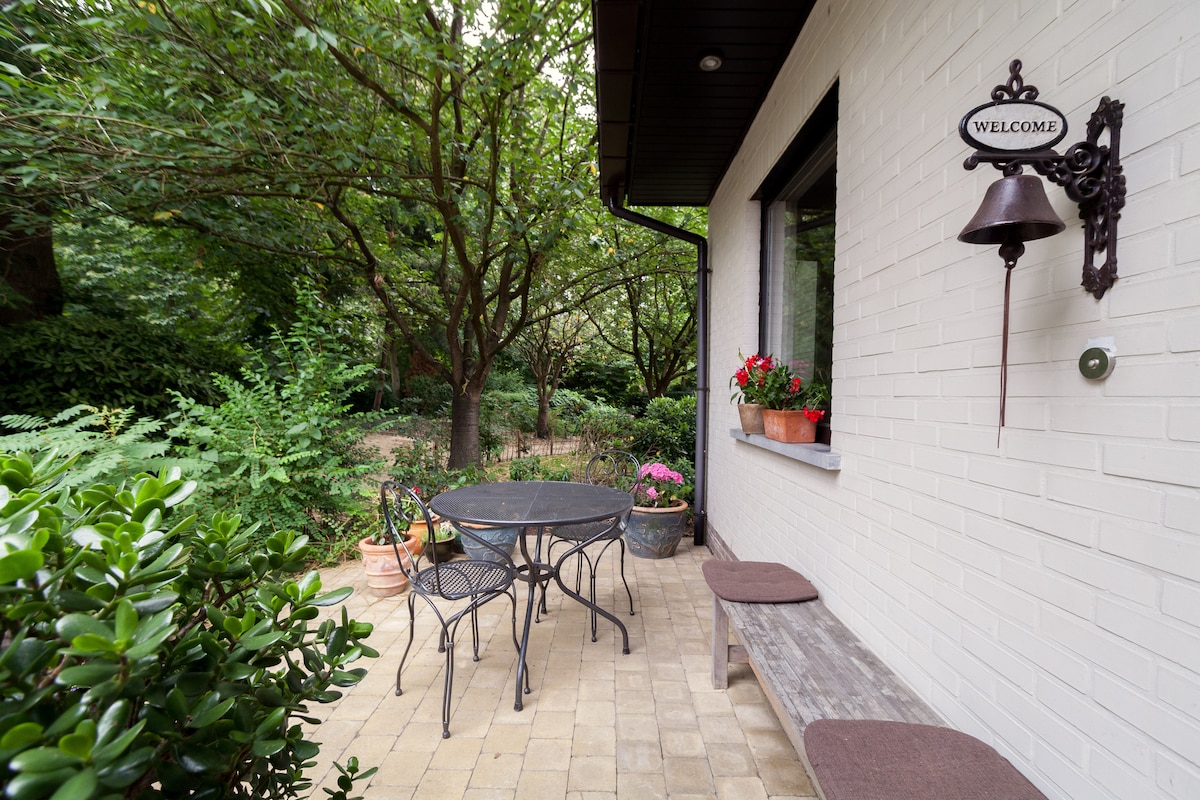 We moved into our new home early 2019 after intensive renovations. As a result, the impressive living room is full of light, with a fully equipped brand new kitchen, no vis-a-vis and a beautiful view on a patio garden full of trees. The bedrooms are comfortable and cosy, the bathroom luxurious. There is a security camera at the entrance of the house and will be disconnected at your arrival.
