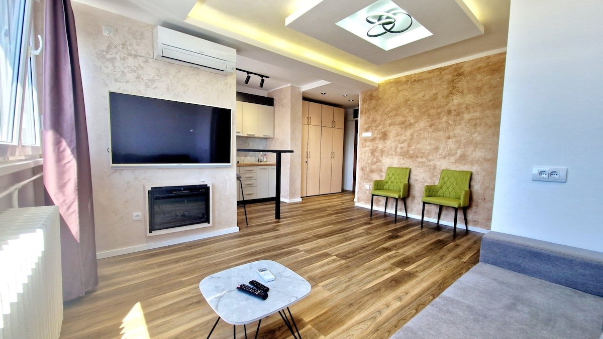 Modern Studio in New Belgrade | Business Hub + Free Garage Stay in a stylish, fully-equipped studio in New Belgrade’s business district, ideal for business travelers & city explorers. Enjoy self-check-in, 24/7 reception, free high-speed WiFi & a private garage. Walk to offices, shopping malls & top restaurants, with easy access to the Sava River, airport & city center. Book now for a seamless & hassle-free stay!