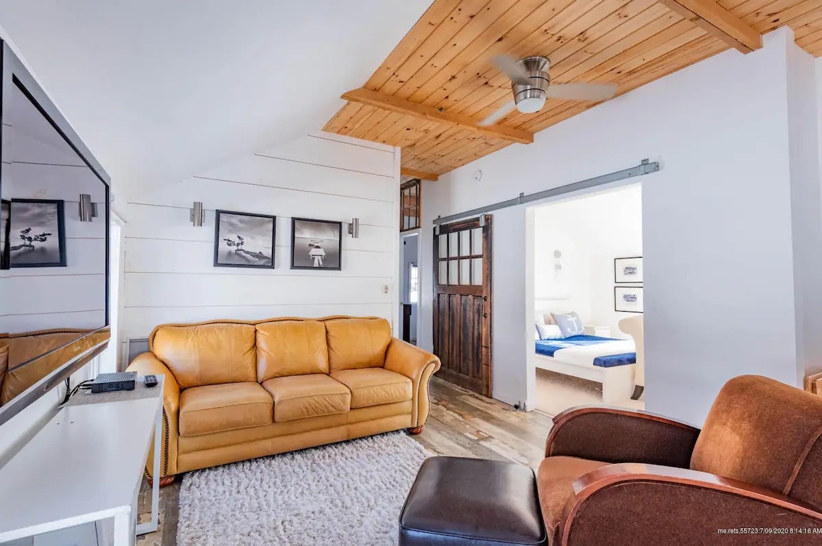 Once the island Trading Post (in the 1820's) now serves as a private retreat on Westport Island. The whole property has been listed on the National Register of Historic Places since 1982. The building is nestled at the water's edge, half on land and half on stilts over the tidal waters of the Sheepscot River. The property has its own private deck, island, rocky beach, trails and hammock. This is an old structure - over 200 years old! A great piece of history and an absolute oasis.