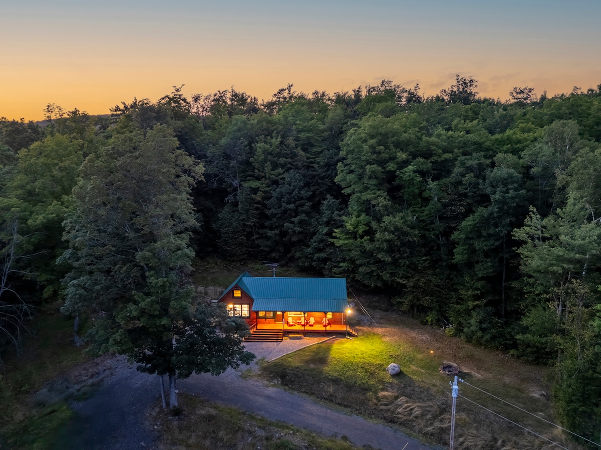 Relax at this off-grid modern A-Frame cabin on 90 acres in Maine's Lakes Region. The cabin is tucked deep in the woods, far away from everything. 4 kayaks and firewood included. Separate bunk cabin increases sleeping capacity to 10 Wood-Fired Cedar Hot Tub - a relaxing, very unique experience 5+ lakes nearby- excellent swimming and kayaking Cedar throughout cabin, concrete countertops, cedar/concrete shower. Outdoor firepit. Hiking trails. Beaver Pond. Property has private airstrip (51ME)