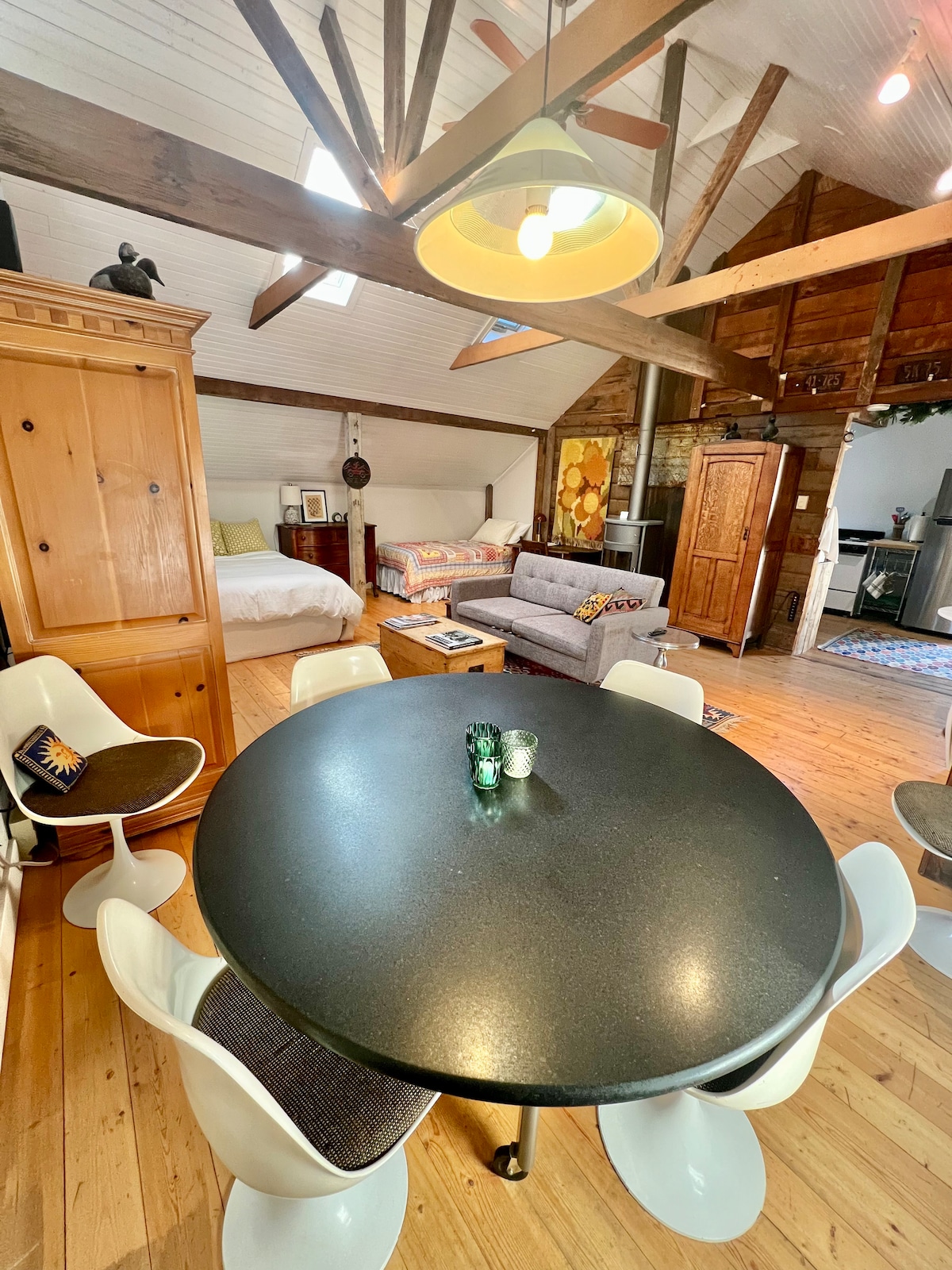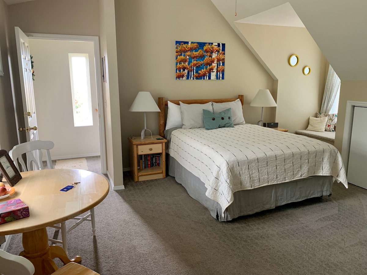 Spacious, Bozeman second-floor suite in the guest house. (One of two suites in the guest house.) Bridger Mountain views, and end-of-road privacy. Features vaulted ceilings, private bathroom, and coded entry door, TV, Keurig and coffee, tea and beautiful lighting. Perfect for couples, solo travelers, families, or business stays. Enjoy outdoor space, walkable neighborhood, and easy access to Bozeman, the airport, and local attractions. Dog-friendly (not left unattended.)