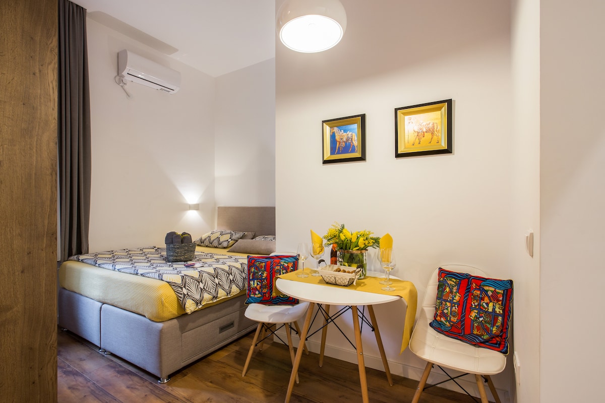 The brand new, 26m2 apartment is fully renovated and equipped with all the necessary for your stay. You can enjoy and relax in super comfortable MURPHY QUEEN SIZE BED And If you need an extra bed, we are offering you a spacious folding chair. You are located within walking distance of all tourist attractions, pedestrian and bohemian zone. 50m from Knez Mihailova street, 100m from Skadarlija, 200m from Kalemegdan. Stylish, modern, unique and cosy apartment is perfect for up to 2 grown up persons.