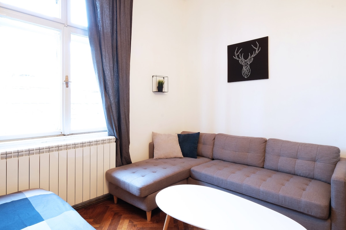 You'll love your stay in this modern, bright, newly renovated apartment next to the spectacular Kalemegdan Park and main pedestrian zone Knez Mihajlova! In close proximity you'll find Strahinjića bana street with all those charming cafés and Skadarlija bohemian quarter famous for traditional Serbian cuisine. My place features cozy and bright living and dining area, fully equipped kitchen, modern bathroom and a bedroom with king-size bed with super comfy mattress.