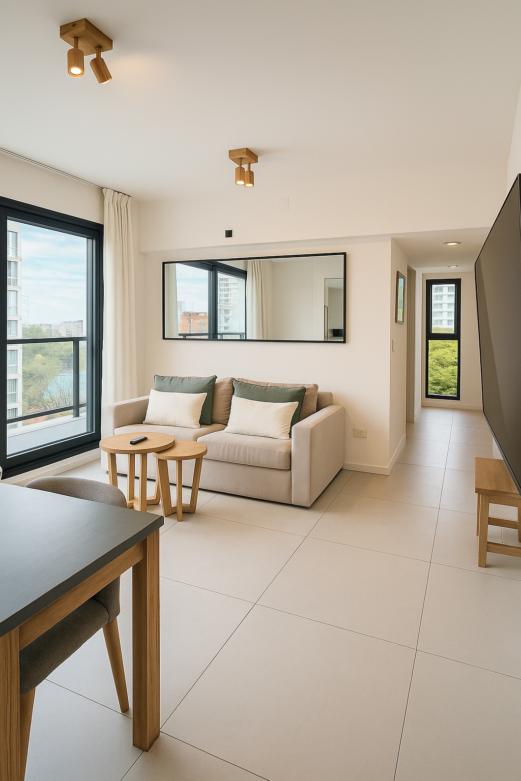 Domus Olivos harbour premium apt, riverside views, bird sounds, lots of natural light and green area. 54sqm distributed in an open floor, integrated kitchen, living room, Queen bed, and terraced dining room balcony Super WIFI 600 Mb, Full Amenities, decoration and furniture of category from Indonesia, Bali & India. 24 hour security - area guarded by the Navy and since is located a few meters from the presidencial house is one of the safest area in the city.