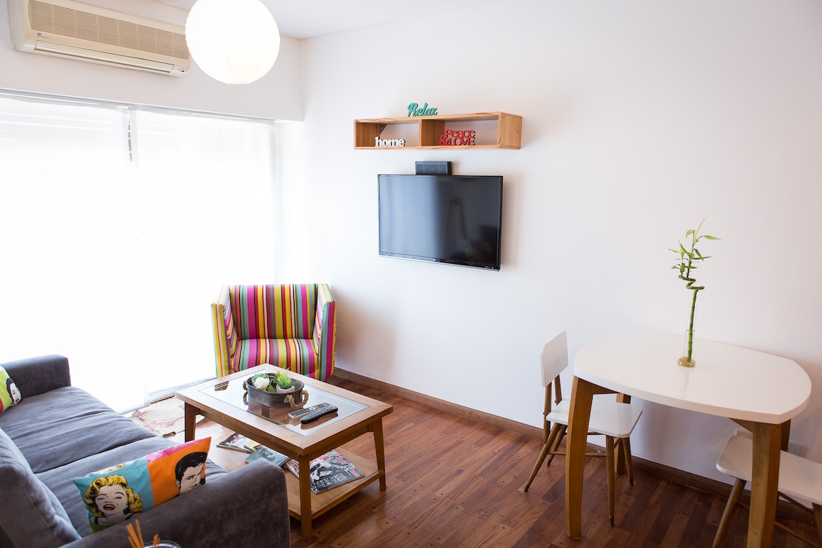 Loft luminoso y muy funcional para 2 o 3 personas en la mejor zona de Palermo y a 2 cuadras del subte. Amplio balcón, lavarropas y secarropas, aire acondicionado y todo completamente equipado para asegurar que tengas la mejor experiencia. Very luminous and functional Loft for 2 to 3 people at the heart of Palermo and 2 blocks away from the subway. Large balcony, washing and drying machines, AC, fully equipped for you to have the best experiencie possible.