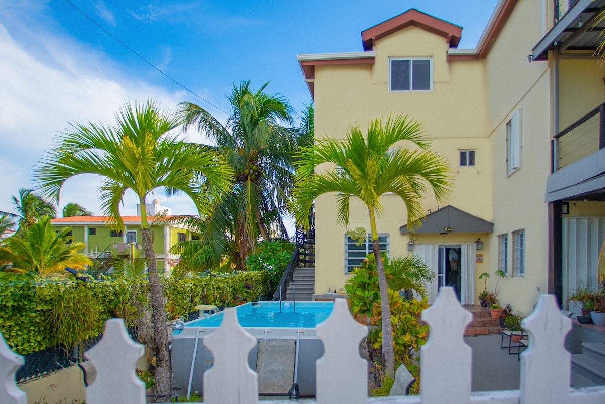 CORAL PARADISE VILLAS- We offer 3 newly renovated apartments that are situated in one of the safest areas of Belize City. Safest: we are on the same street as the Panama Embassy, and 1 block away from our Ex-Prime Minister’s Home. Just a 2 min walk from the Ocean a 15 min drive from the Int. Airport & 10 min from downtown. You'll be a 2 min walk from the popular local restaurant ‘Smokeez’, & neighboring Stores. Stay with us to visit popular tourist attractions like the Mayan ruins, & Islands!