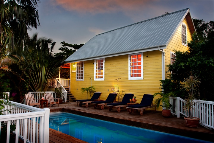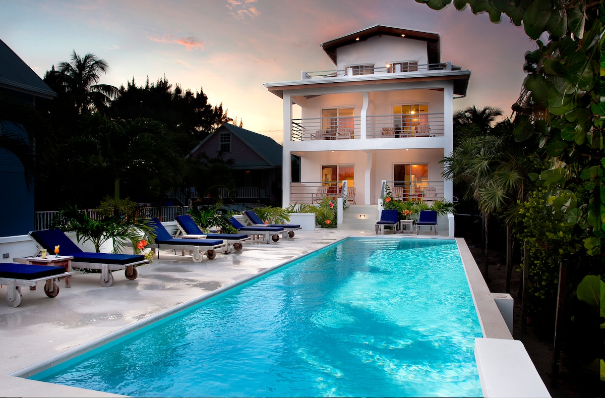 Weezie's is a boutique hotel with 16 rooms and 5 garden cottages. The 4 Queen Oceanfront Suites each have a fully equipped kitchen, spacious sitting area and large covered deck overlooking the Caribbean Sea, pool, beach & pier. more info at weeziescayecaulker. There are 2 upper level Queen Oceanfront suites and 2 pool level Queen Oceanfront suites. Weezie's has an open air restaurant and offers both fishing and snorkeling tours and yoga