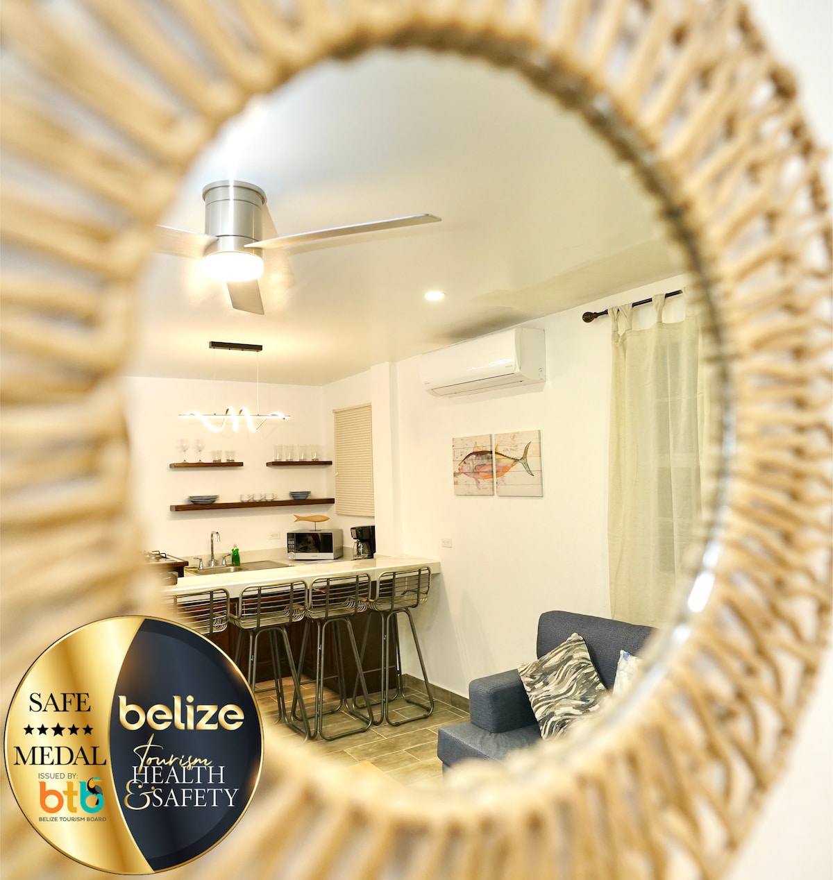 CORAL PARADISE VILLAS- We offer 3 newly renovated apartments that are situated in one of the safest areas of Belize City. Safest: we are on the same street as the Panama Embassy, and 1 block away from our Ex-Prime Minister’s Home. Just a 2 min walk from the Ocean a 15 min drive from the Int. Airport & 10 min from downtown. You'll be a 2 min walk from the popular local restaurant ‘Smokeez’, & neighboring Stores. Stay with us to visit popular tourist attractions like the Mayan ruins, & Islands!