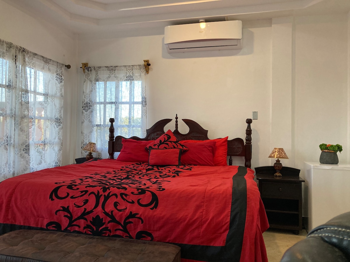 This is a warm, welcoming 2 air conditioned bedroom retreat, ideally located in the heart of the country, 10-15 minutes from the international airport. The neighbourhood is quiet and made up of mostly professional households. It is in close proximity to a small deli, restaurants, grocery stores, a private and public hospital, 2 gyms, public transportation, and the sea.