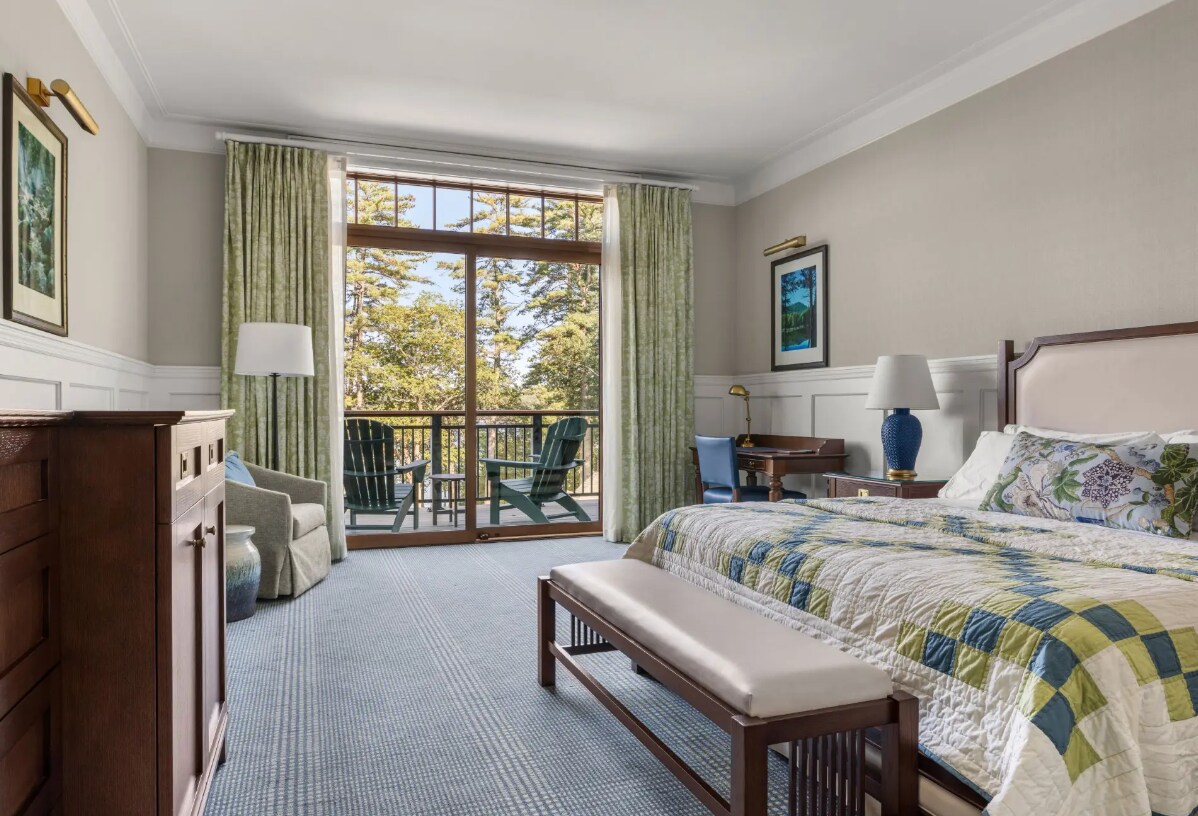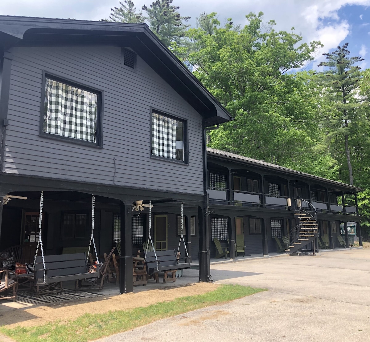 Our suites consist of two adjoining rooms: a living/dining/kitchen area and a separate bedroom, offering a variety of sleeping options, including queen, double, and twin beds. Each suite is equipped with an air conditioning unit to keep you cool on warm summer days. Enjoy access to a private beach, playground, outdoor fire pit, BBQs, and lawn games for all ages. Dock space is available upon request, and guests can also explore the beauty of Squam Lake with our kayaks, canoes, and SUP boards!