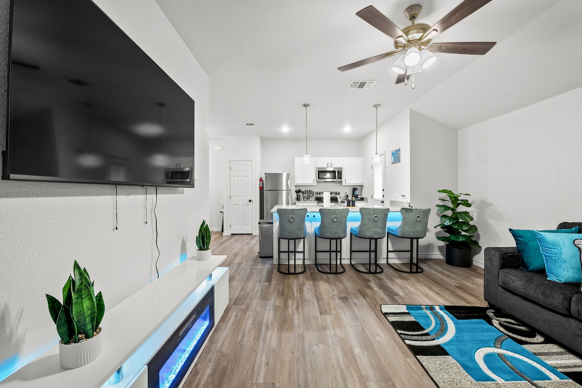 3 bedroom, 1 bath home in Killeen, TX. Ideal for families who need a place to stay between moves or for work crews who need a place to stay while in town for a project. Take advantage of our fully stocked kitchen to cook for you and your group and then later enjoy a fun board game from our collection! Each room includes a blackout curtain to help block the heat and keep it dark for those who enjoy sleeping in! When you wake up, have a warm cup from our coffee bar!