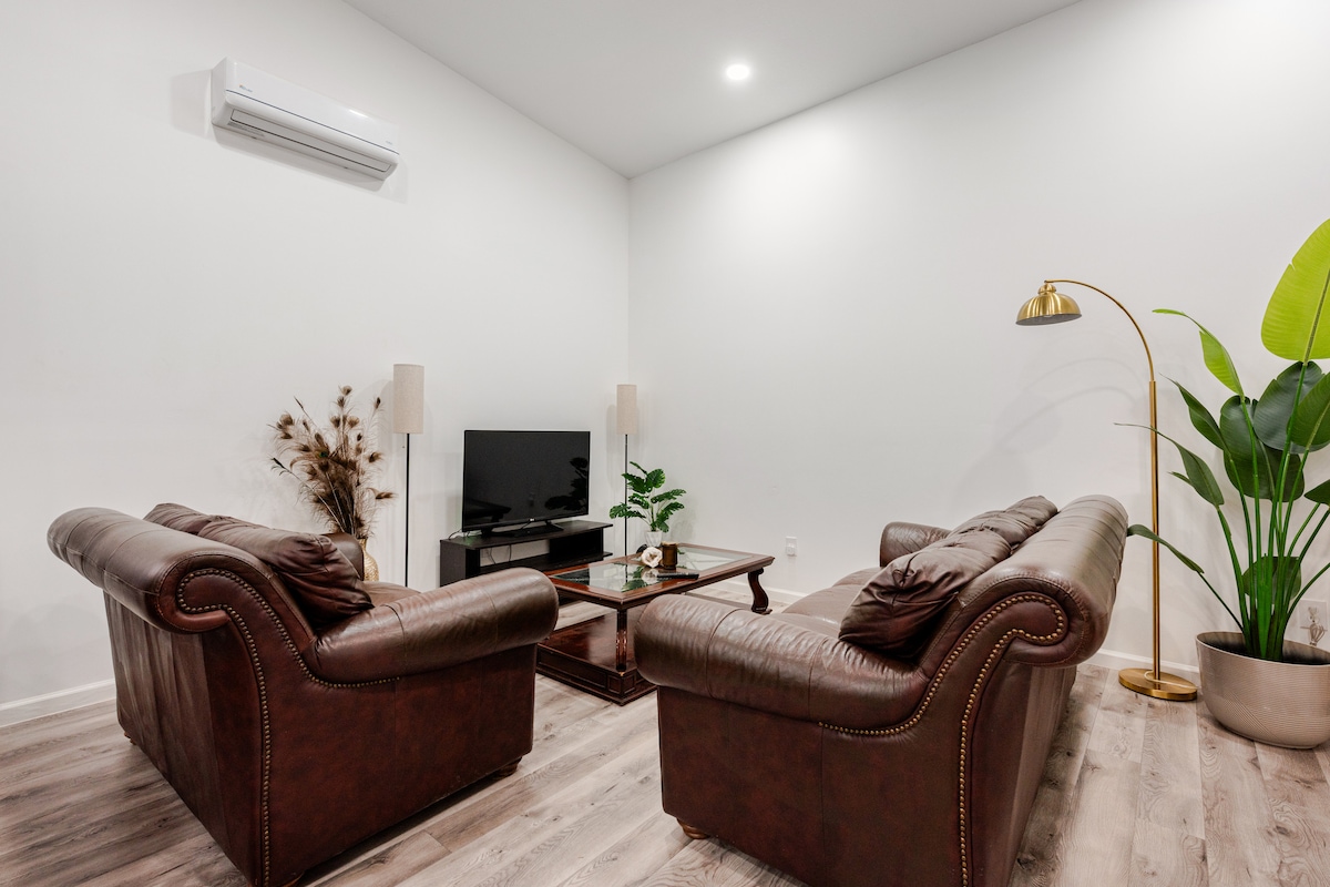 This stylish place to stay is perfect for small family trips or traveling friends. The two bedrooms feature a Queen size bed with the primary bedroom having an attached bathroom. There are many fantastic amenities here to enjoy during your stay including a pool, VR game room, full gym, upscale coffee bar, sand volleyball, ping pong & more. There is space for a blow up mattress if you are a larger family party and some kids wouldn’t mind sleeping on that. Inquire if you need a smaller place.